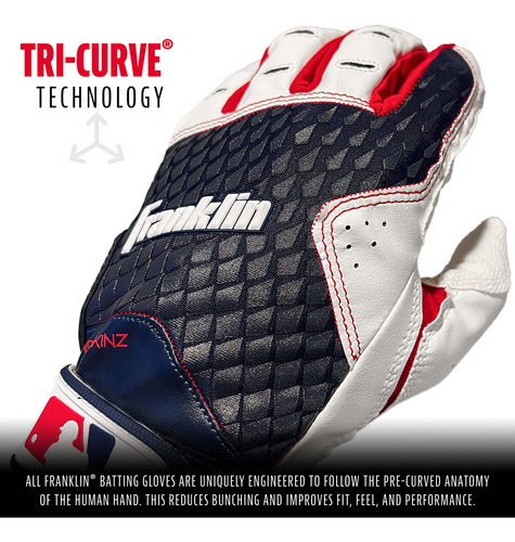 Activate your swing with the 2nd-Skinz batting gloves from Franklin Sports. These gloves provide a great feeland grip for ballplayers with Franklins signature, digitally-etched synthetic palm. A centralized lycra-flex hand back allows this glove to adapt to all players needs.