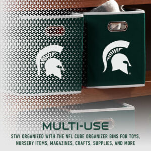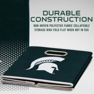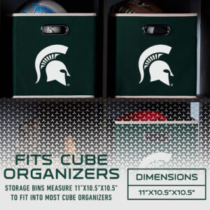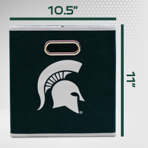 Franklin Sports NCAA Michigan State Spartans Collapsible Storage Bin – Made to Fit Storage Bin Shelf Organizers – 10.5 x 10.5 – Organize & decorate with your favorite team – 11 x 10. 5 x 10. 5 collapsible storage cube – Durable non-woven polyester construction – Reinforced chrome handle – Fits most cube storage shelving units