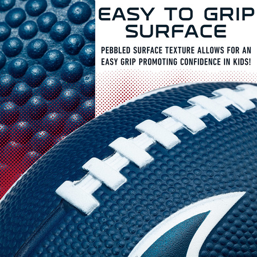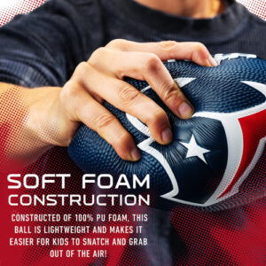 Franklin Sports NFL 8.5 Foam Football é a joia da coroa das bolas de futebol de espuma no mercado! Seus logotipos 3D especialmente projetados dão a cada equipe uma aparência única, para que você possa mostrar seu espírito de equipe nas portas traseiras, no quintal, na praia ou na churrasqueira do bairro. Esta mini bola de futebol 8,5 tem o tamanho perfeito para seu futuro campeão se acostumar a pegar e jogar para poder jogar por horas. Dê confiança ao seu jogador com esta construção macia de espuma 100% PU, que é leve e promove a confiança de crianças de todas as idades para se envolverem no jogo! Sua alça de espuma macia torna mais fácil para as crianças pegarem e saírem do ar, fazendo com que cada brincadeira pareça um rolo de destaque! Esta bola de futebol é oficialmente licenciada pela NFL e apresenta logotipos e cores autênticos de equipes.