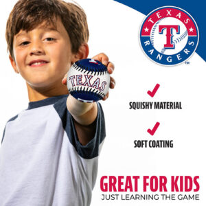 Franklin Sports Texas Rangers MLB Team Baseball – MLB Team Logo Soft Baseballs – Toy Baseball for Kids – Great Decoration for Desks and Office – SHOW TEAM PRIDE: These MLB Team balls let you rep your favorite baseball team out on the diamond or around the house and office – SOFT CONSTRUCTION: These balls are made with a cushioned synthetic surface and interior which make them softer and bouncier than regular baseballs – GREAT FOR KIDS: The squishy material and soft coating make these balls great for kids who are just learning the game – GREAT FOR DECORATION: The MLB team designs make these balls a perfect addition to your desk or your office to show your team spirit – ALL MLB TEAMS: We have ball designs for all 30 MLB teams so that all fans can get in on the action