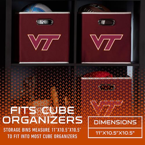 Mostre apoio à sua equipe enquanto decora e organiza seu quarto! as caixas de armazenamento dobráveis da NCAA são o complemento perfeito para qualquer quarto, sala de jogos, mesa e muito mais! as caixas são projetadas para caber na maioria dos sistemas de prateleiras de cubos de 12 “x 12" e dobram-se convenientemente quando não estão em uso. Cada caixa apresenta os logotipos e cores oficiais do seu time favorito da NCAA.