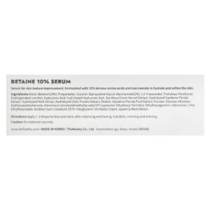 Sérum para melhora da textura da pele, formulado com 10% de aminoácidos de betaína e nicotinamida para hidratar e suavizar a pele.