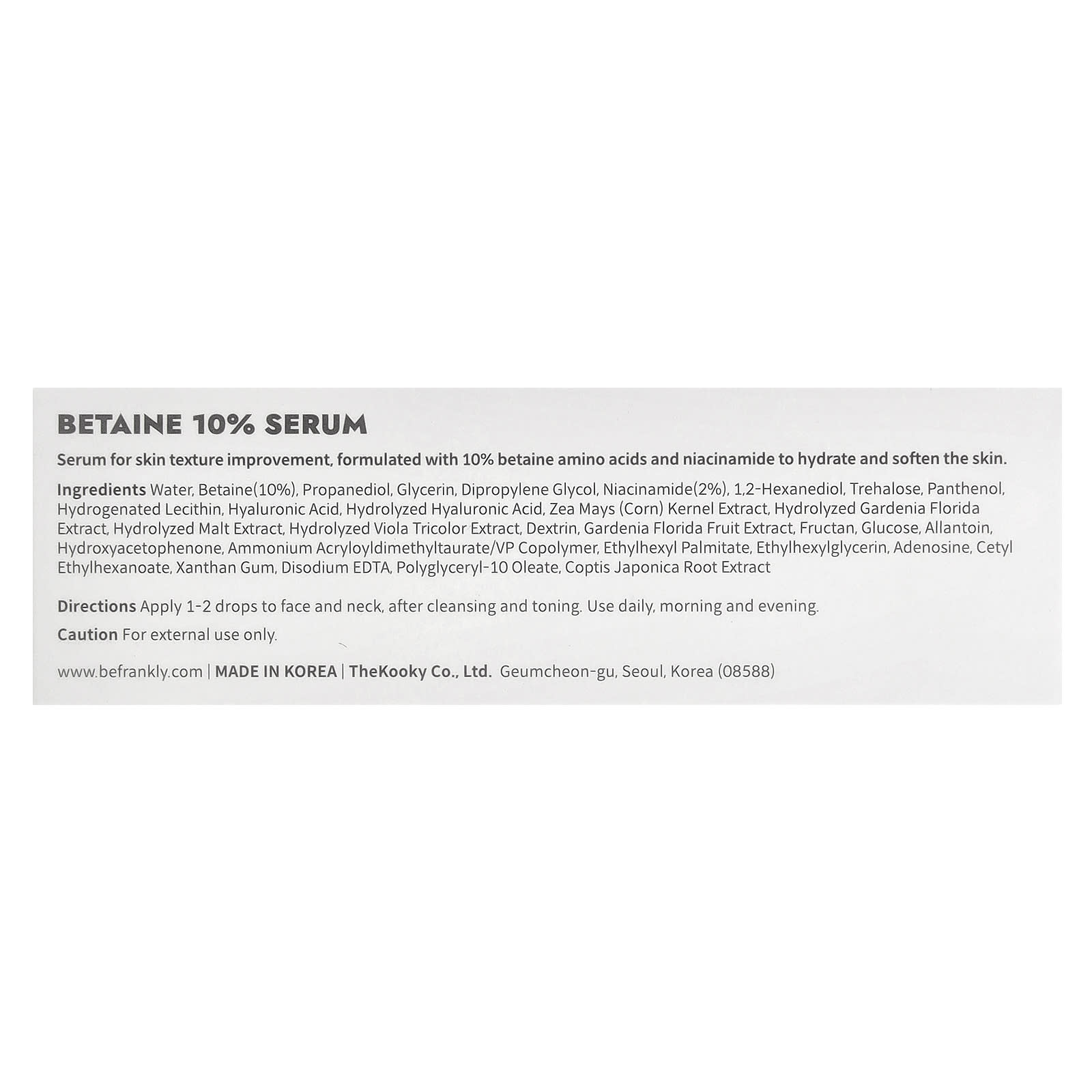 Frankly Sérum de Betaína a 10% 30 ml (1 fl oz) – Frankly Beleza Tratamentos e Séruns Séruns Faciais Beleza por Ingrediente Cuidado para a pele com niacinamida.