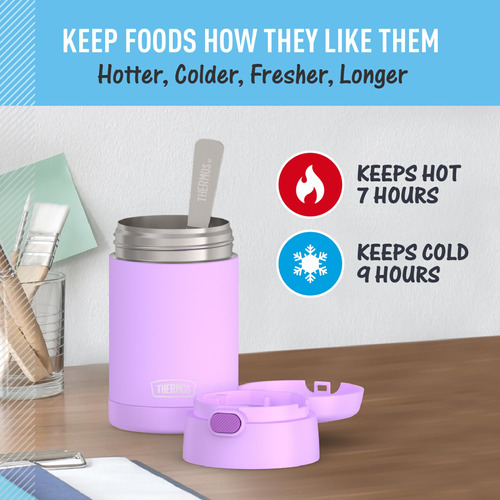 Frasco de alimentos isolado a vácuo de aço inoxidável THERMOS FUNTAINER de 16 onças com colher dobrável, roxo neon – permanece quente ou frio: a tecnologia de isolamento térmico a vácuo retém a temperatura das refeições quentes ou frias. Mande-os para a escola com sua sopa favorita ou lanche frio. Esta jarra de comida mantém o conteúdo quente por até 5 horas e frio por até 7 horas – DURÁVEL PARA USO DIÁRIO: a construção em aço inoxidável 18/8 de alta qualidade é construída para lidar com quedas, marcas e diversos tipos de materiais desbastados – Design adequado para crianças: leve e compacto com tampa de botão de pressão, fácil de transportar e abrir. A boca larga é fácil de encher, comer e limpar. Você pode colocar sua jarra de comida FUNTAINER na máquina de lavar louça, embora seja recomendável lavá-la à mão – COLHER INCLUÍDA: Não é necessário embalar uma colher separada! Este pote de comida tem um que se dobra convenientemente para guardar dentro da tampa – PROTEJA O QUE VOCÊ AMA: este equipamento THERMOS KIDS é feito com materiais duráveis que podem ser lavados na máquina de lavar louça, para manter o almoço e as bebidas como eles gostam. O quebra-cabeça da hora do almoço está oficialmente resolvido
