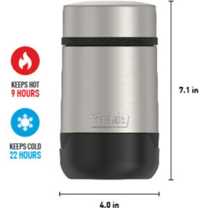 O frasco para alimentos de aço inoxidável de 18 onças da ALTA SERIES BY THERMOS garante que as refeições para viagem mantenham a temperatura. Com uma linha atraente de garrafas de hidratação premium, armazenadores de alimentos e copos de viagem, a ALTA SERIES BY THERMOS foi projetada para ajudar você a acompanhar uma vida em movimento. Este frasco de comida mantém frutas e vegetais frescos frescos frescos por até 22 horas ou sopas e aveia bem quentes por até 9 horas. Fácil de encher, fácil de limpar e inclui uma tigela extra removível e uma colher dobrável de aço inoxidável de tamanho normal que cabe diretamente na tampa. Lavável na máquina de lavar louça Possui uma tampa de liberação de pressão de dois estágios e a confiável tecnologia de isolamento a vácuo THERMOS para ajudar a manter os alimentos frescos durante o dia.
