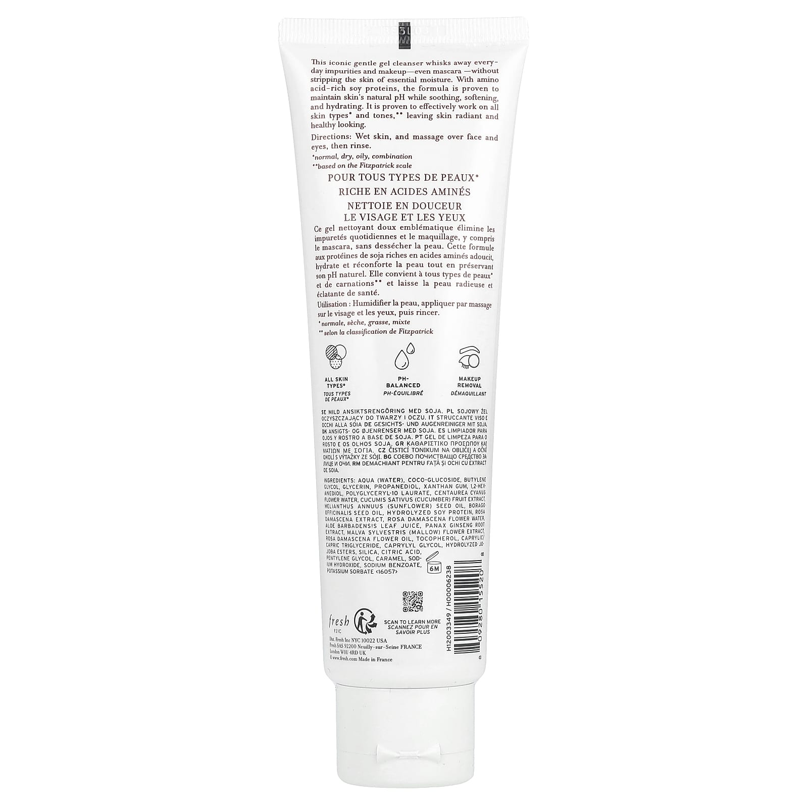Este icônico gel de limpeza suave remove as impurezas do dia a dia e remove a maquiagem e até mesmo a máscara de cílios, sem tirar a umidade essencial da pele. Com proteínas de soja ricas em aminoácidos, a fórmula demonstrou manter o pH natural da pele ao mesmo tempo que suaviza, suaviza e hidrata. Foi comprovado que ele age de forma eficaz em todos os tipos* e tons de pele, **devolvendo a pele radiante e com aparência saudável.