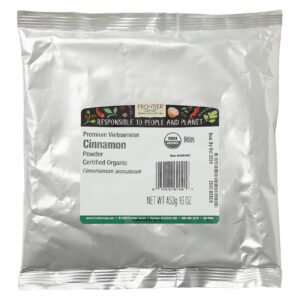 A Canela Vietnamita da Frontier Co-op oferece o sabor mais forte de todas as espécies de canela. Nossa canela moída é 100% orgânica, possui certificado kosher e não é irradiada. Devido à sua doçura altamente potente e toque picante, cozinheiros de todo o mundo usam essa variedade para satisfazer muitas de suas necessidades culinárias, de biscoitos e tortas a cinnamon rolls, muffins e bolos. Ela acrescenta um toque agradável a chás ou cafés e também age como um poderoso aromatizador de ambiente devido ao aroma intenso e a óleos com alto teor de evaporação.