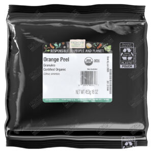 Os Grânulos de Casca de Laranja Orgânica (Citrus sinensis) da Frontier Co-op são obtidos de laranjas frescas que pertencem à família Rutaceae, que é um grupo de laranjas doces que inclui laranjas-vermelhas e laranjas-vermelhas. A maior concentração de óleos em uma laranja doce é encontrada na casca, razão pela qual este produto proporciona um sabor excepcionalmente forte.