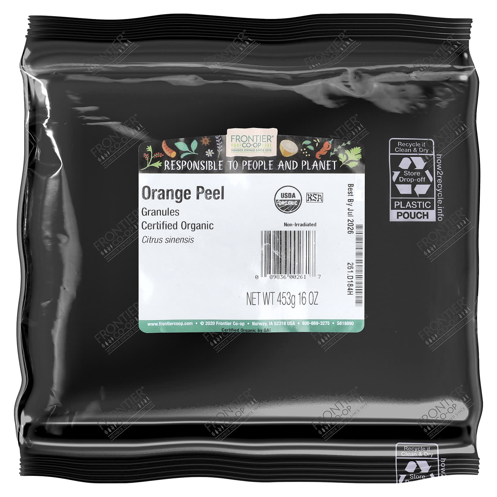 Frontier Co-op Casca de Laranja Orgânica Grânulos 453 g (16 oz) – Frontier Co-op Alimentos Ervas e temperos.