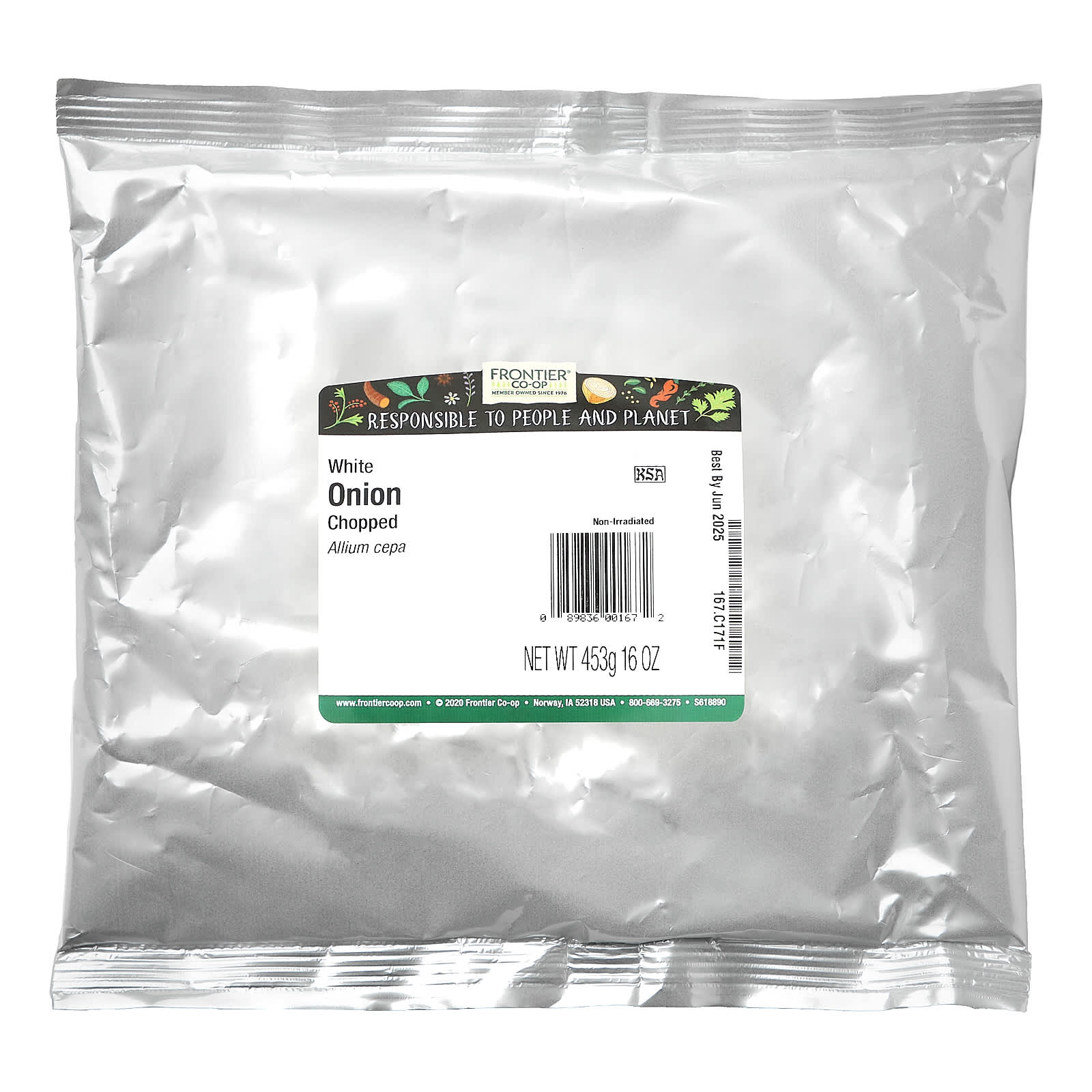 Frontier Co-op Cebola Branca Picada 16 oz (453 g) – Frontier Co-op Alimentos Ervas e temperos Cebola.