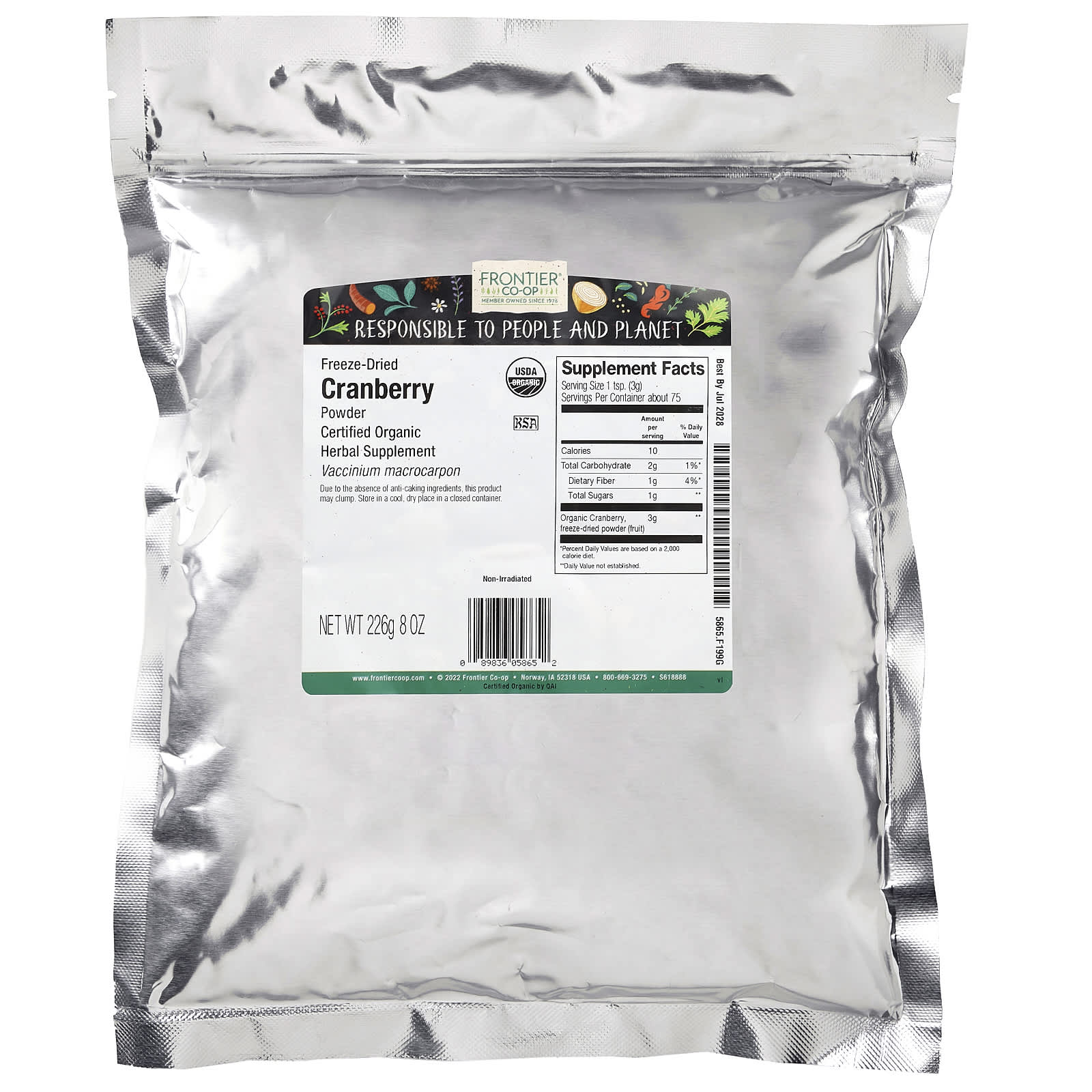 Frontier Co-op Cranberry Orgânico Liofilizado em Pó 226 g (8 oz) – Frontier Co-op Suplementos Superalimentos Alimentos Ervas e temperos.