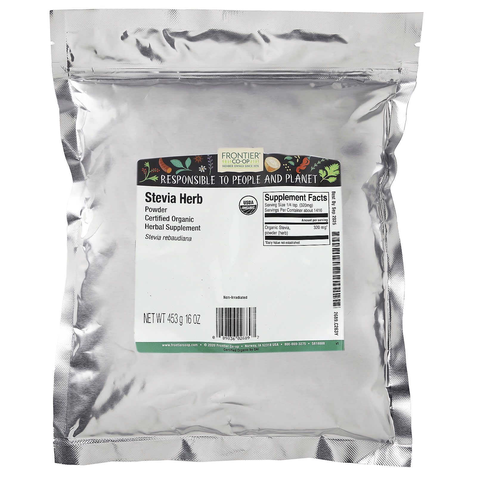 Frontier Co-op Erva Stevia Orgânica em Pó 16 oz (453 g) – Frontier Co-op Alimentos Mel e adoçantes Stévia.