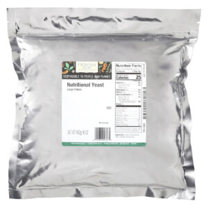 A Levedura Nutricional em Flocos Grandes da Frontier Co-op® é feita a partir de um organismo unicelular, Saccharomyces cerevisiæ, cultivado em melaço de cana e beterraba. O fermento é colhido, lavado, pasteurizado e seco com calor para “desativa-lo”. Por ser inativo, ele não tem a capacidade de fermentar como o fermento de panificação, mas funciona muito bem como tempero e substituto de queijo não lácteo. A levedura nutricional adiciona um sabor de nozes, umami e ligeiramente de queijo a sopas, molhos, molhos ou mexidos sem ovo.