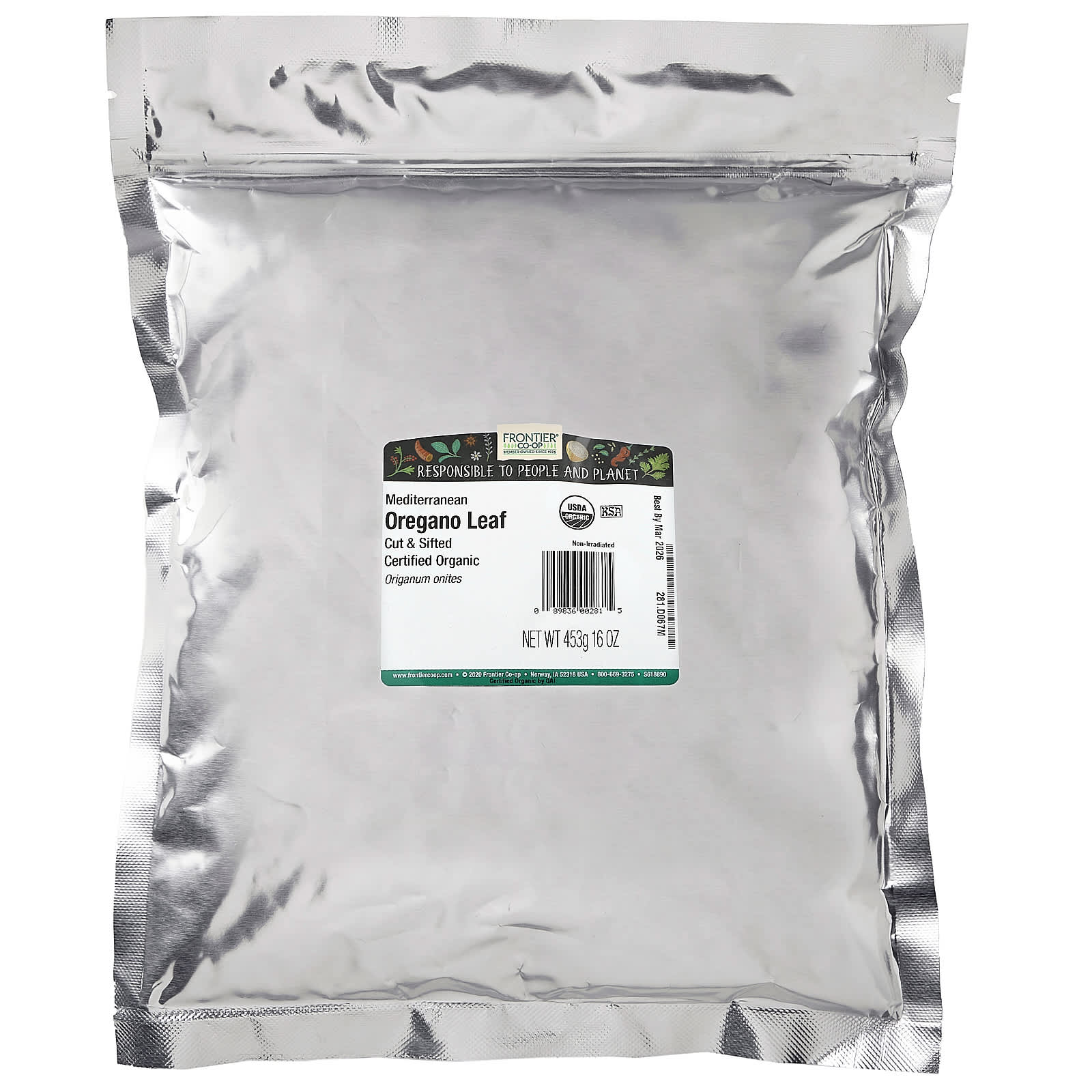 Frontier Co-op Folha de Orégano Mediterrâneo Cortada e Peneirada Orgânica 453 g (16 oz) – Frontier Co-op Alimentos Ervas e temperos Orégano, Temperos.