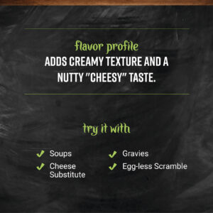 Nossos miniflocos de levedura nutricional são perfeitos para veganos que amam queijo ou para quem busca uma boa fonte de fibra. Esses flocos têm uma forte semelhança com o Parmesão e são uma alternativa saudável e sem laticínio para preparar molhos de queijo, sopas, caldos ou mexidos sem ovo. Use flocos de levedura nutricional no lugar de onde você normalmente usaria queijo, como em pratos de massa, saladas, nachos ou até mesmo biscoitos.