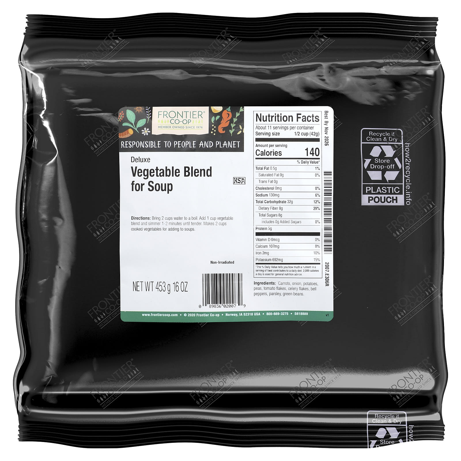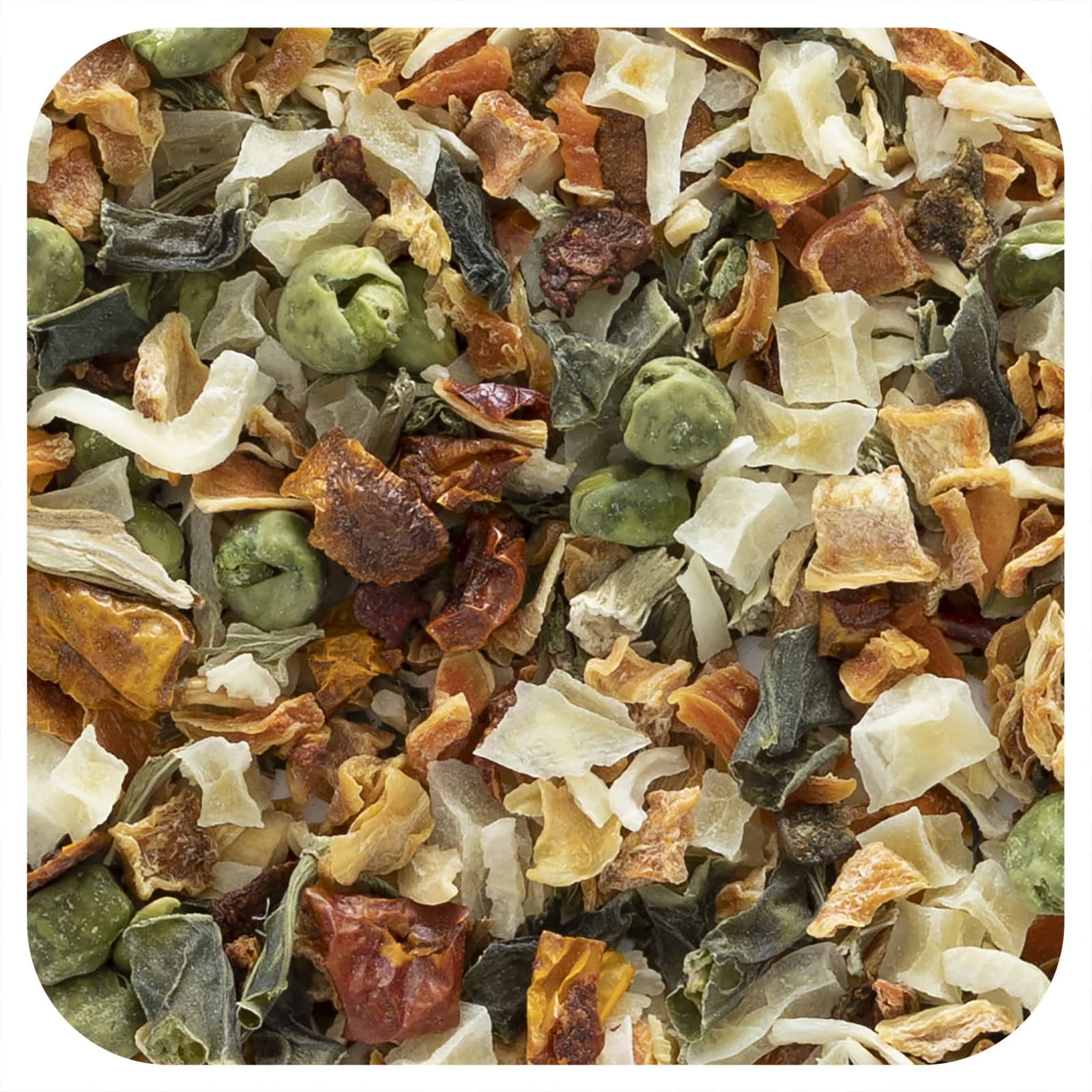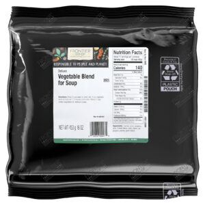 A Mistura para Sopas de Vegetais Deluxe da Frontier Co-op® é a combinação perfeita de vegetais a granel fáceis de preparar, incluindo cebolas, cenouras, ervilhas e batatas. Essa mistura saborosa combina extremamente bem com sopas, ensopados e pratos preparados que usam vegetais. Eles também são deliciosos em batatas fritas, saladas geladas ou preparados como acompanhamento.