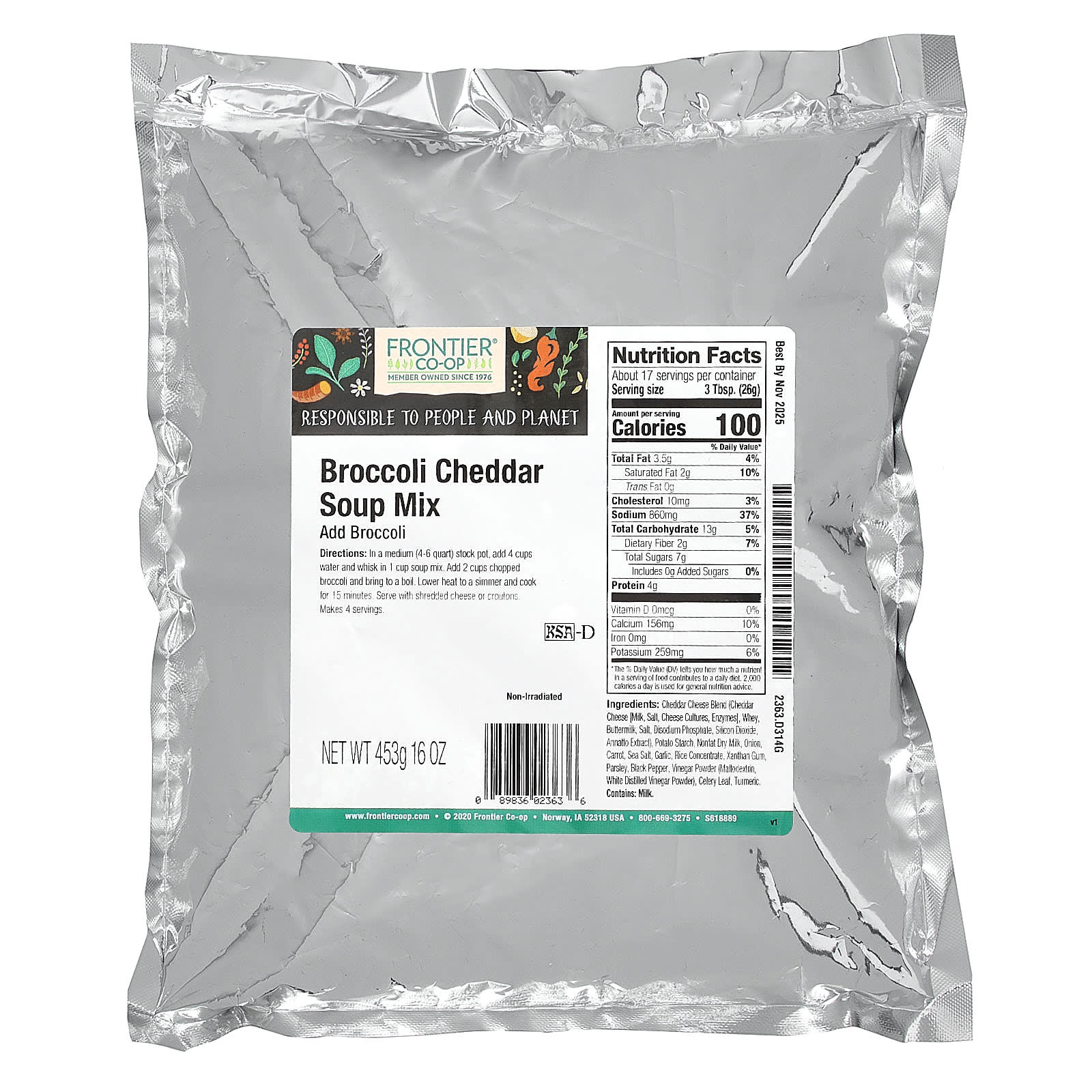 Frontier Co-op Mistura para Sopas de Brócolis e Cheddar 453 g (16 oz) – Frontier Co-op Alimentos Alimentos embalados e prontos Sopas e Caldos.