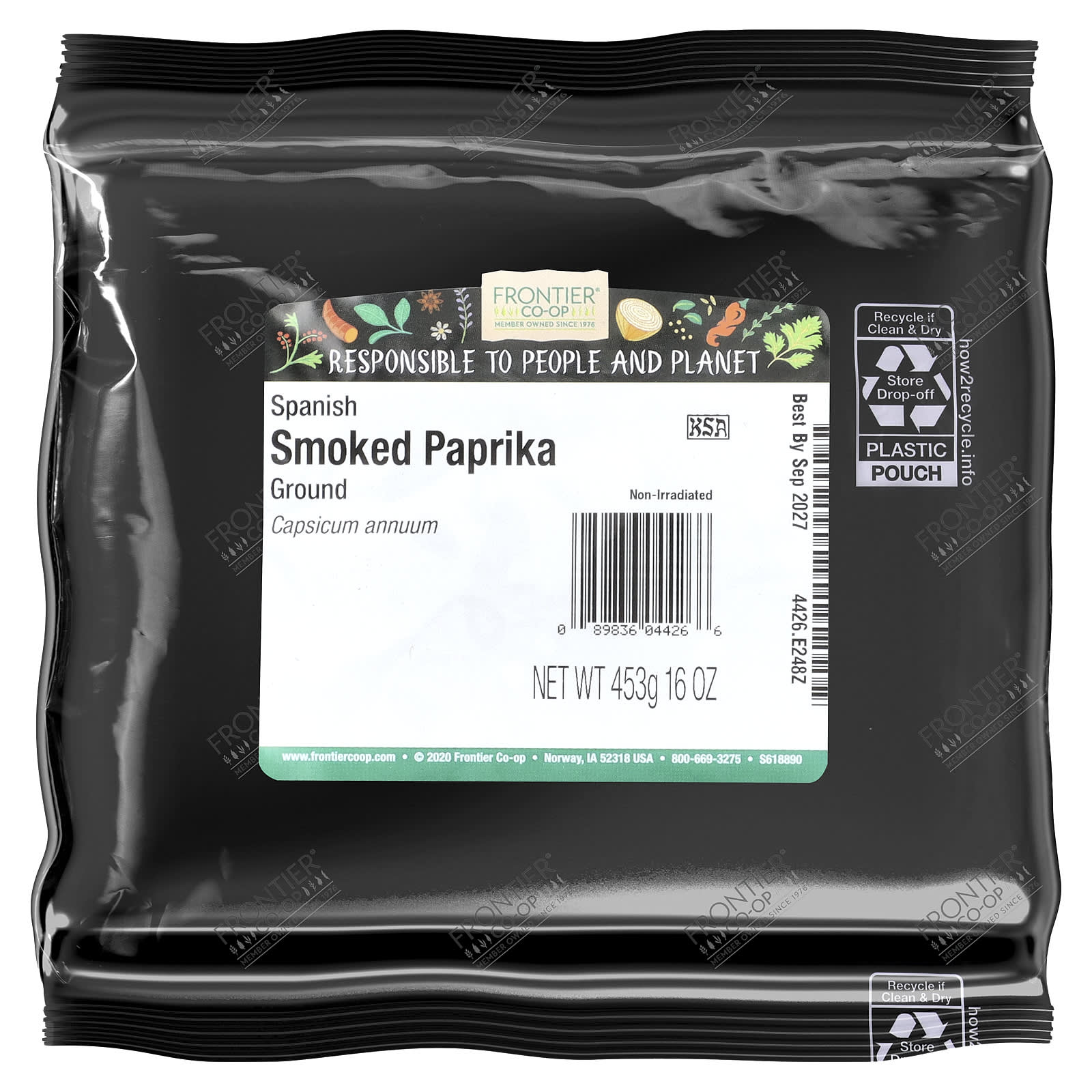 Frontier Co-op Páprica Espanhola Defumada Moída 453 g (16 oz) – Frontier Co-op Alimentos Ervas e temperos Páprica.