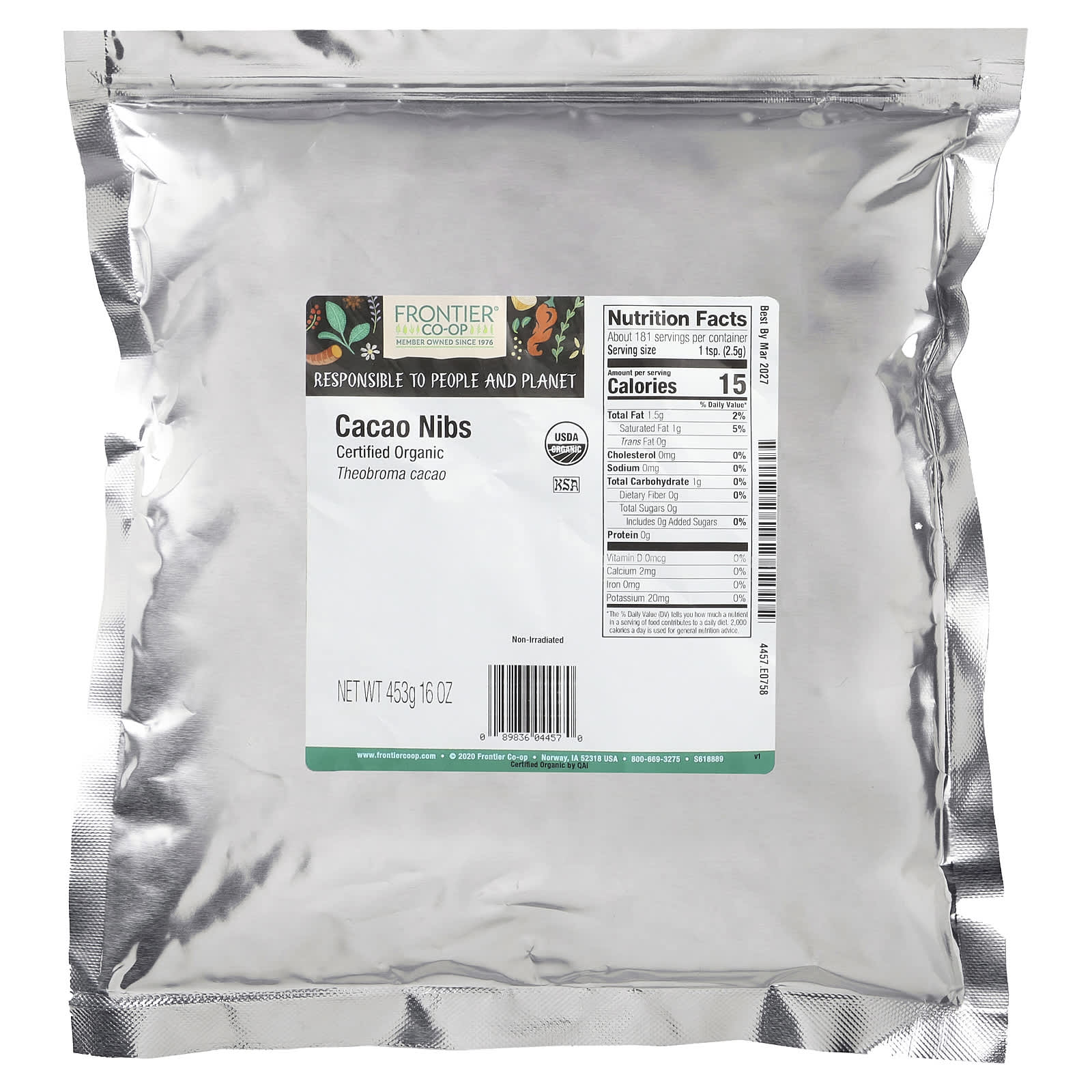 Frontier Co-op Pedaços de Cacau Orgânicos 453 g (16 oz) – Frontier Co-op Suplementos Superalimentos Cacau.
