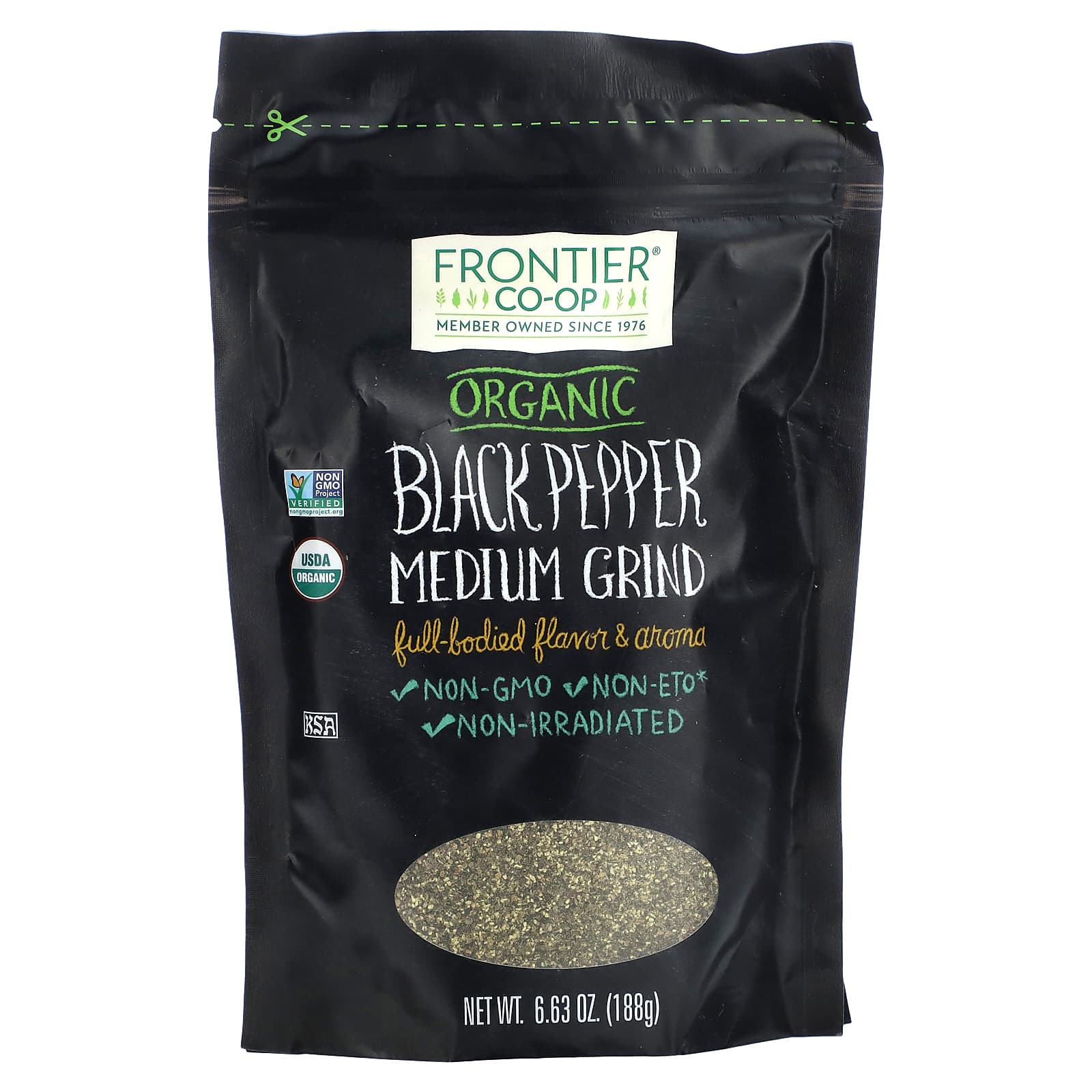 Frontier Co-op Pimenta-do-reino Orgânica Moagem Média 188 g (663 oz) – Frontier Co-op Alimentos Ervas e temperos Pimenta.