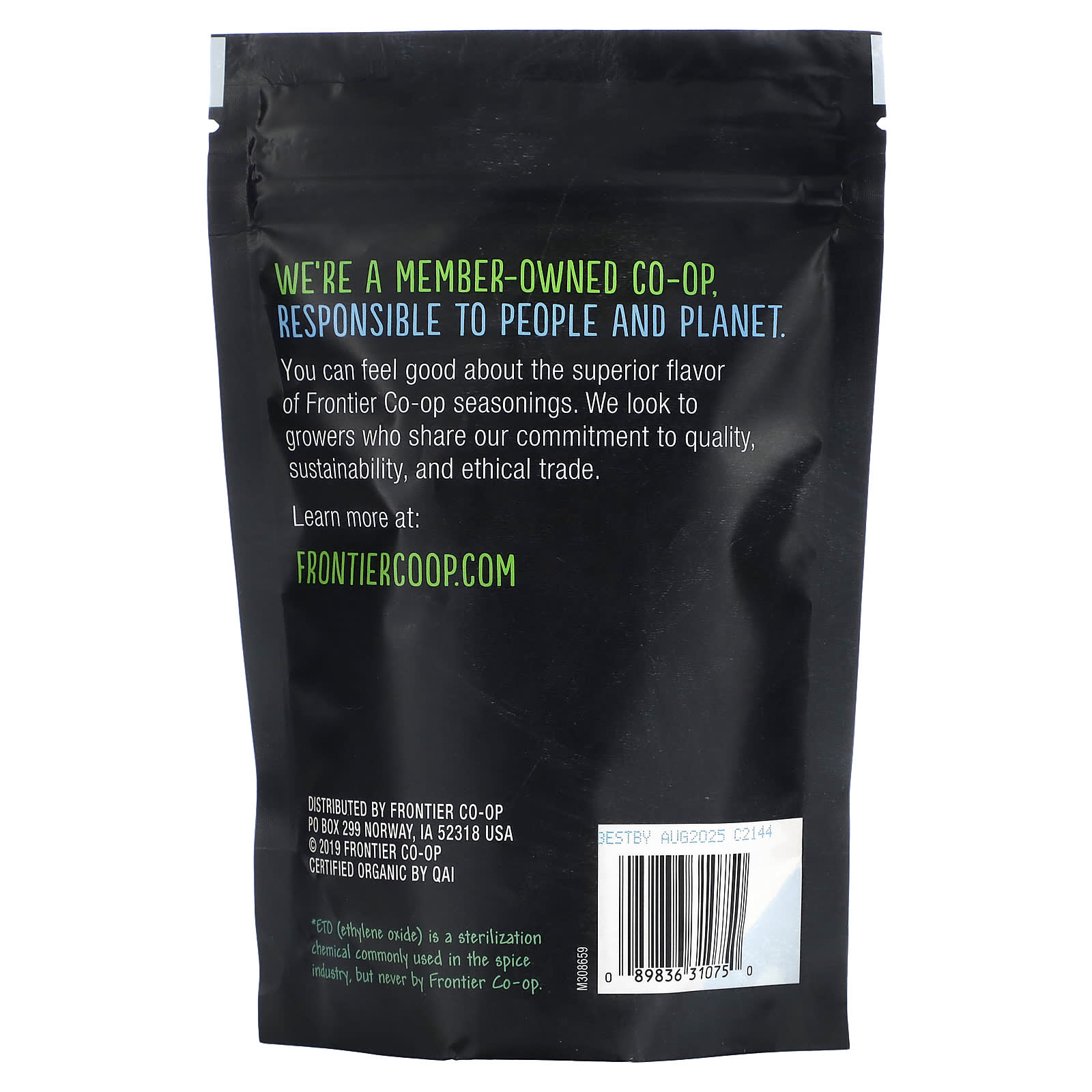 *O ETO (óxido de etileno) é um produto químico de esterilização comumente usado na indústria de temperos, mas nunca pela Frontier Co-op.