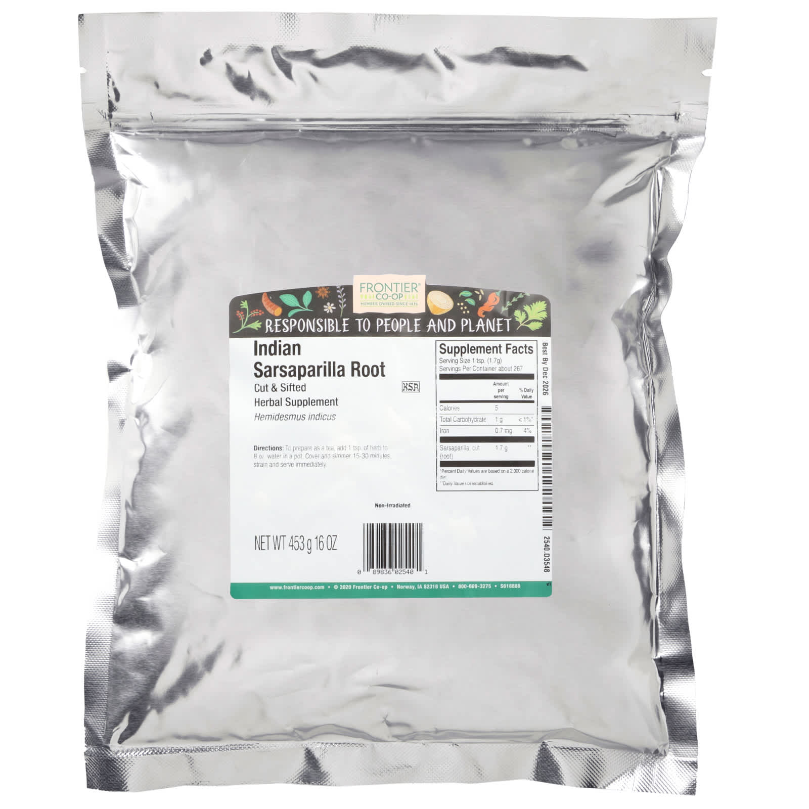 Frontier Co-op Raiz de Salsaparrilha Indiana Cortada e Peneirada 453 g (16 oz) – Frontier Co-op Alimentos Chás e bebidas Tea Chá de ervas Suplementos Ervas Raiz de Salsaparrilha.