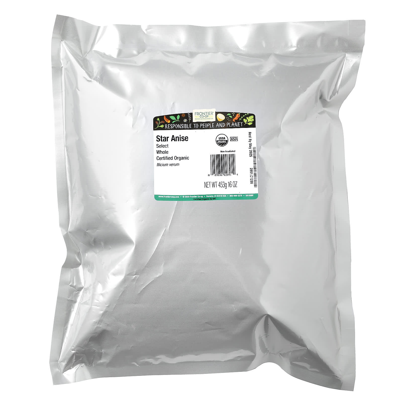 ANIS-ESTRELADO: o Anis-Estrelado (Illicium verum) Integral da Frontier Co-op é um ingrediente orgânico certificado e normalmente encontrado na culinária vietnamita e chinesa. Apesar das semelhanças com a semente de anis, o anis-estrelado é a fruta desidratada de uma árvore completamente diferente.
