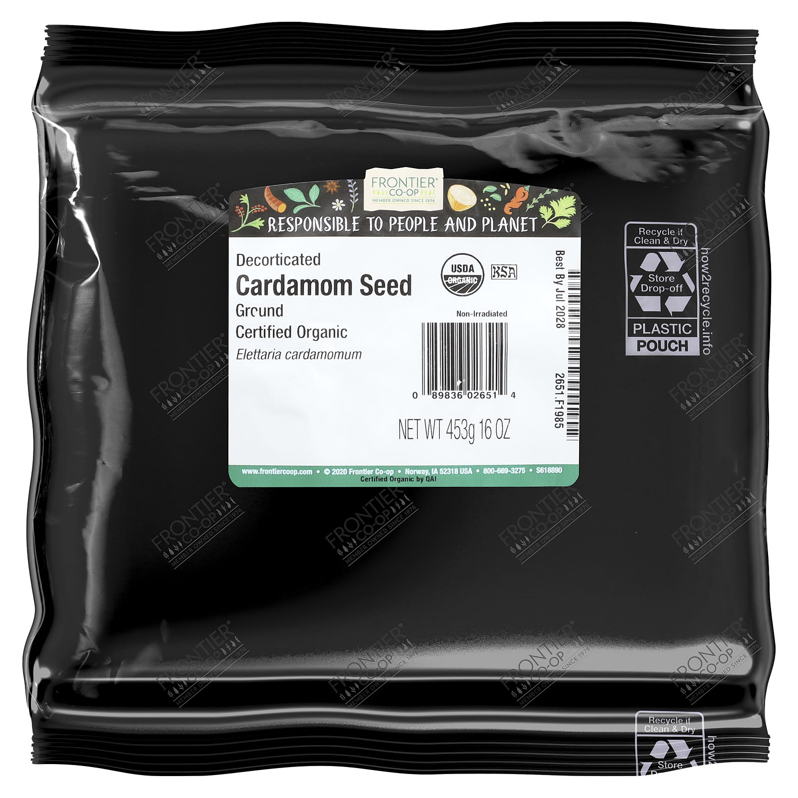 Frontier Co-op Semente de Cardamomo Orgânico Decorticado Moído 453 g (16 oz) – Frontier Co-op Alimentos Ervas e temperos Cardamomo.