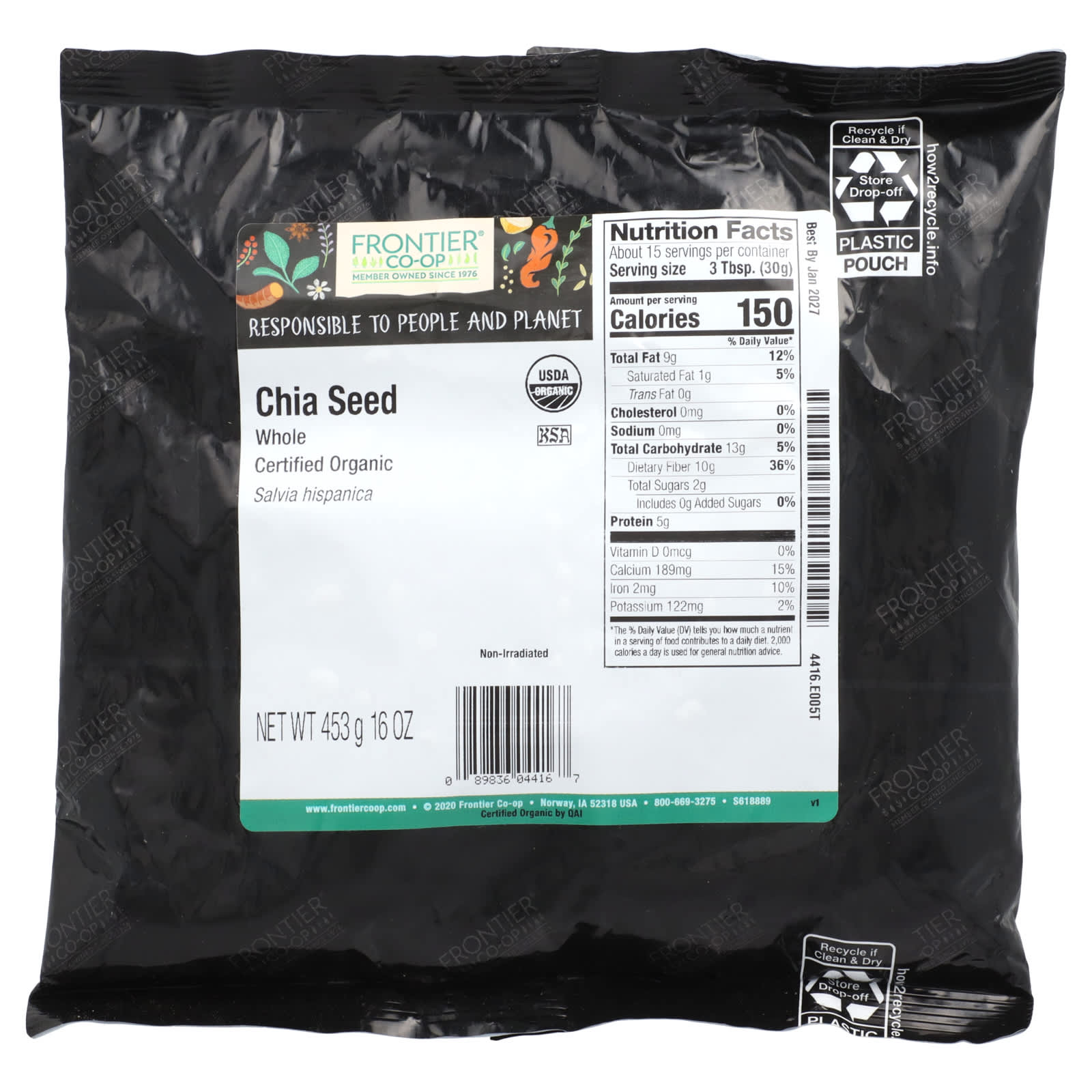 Frontier Co-op Semente de Chia Orgânica Inteira 453 g (16 oz) – Frontier Co-op Alimentos Petiscos e lanches Castanhas e sementes Semente de Chia.