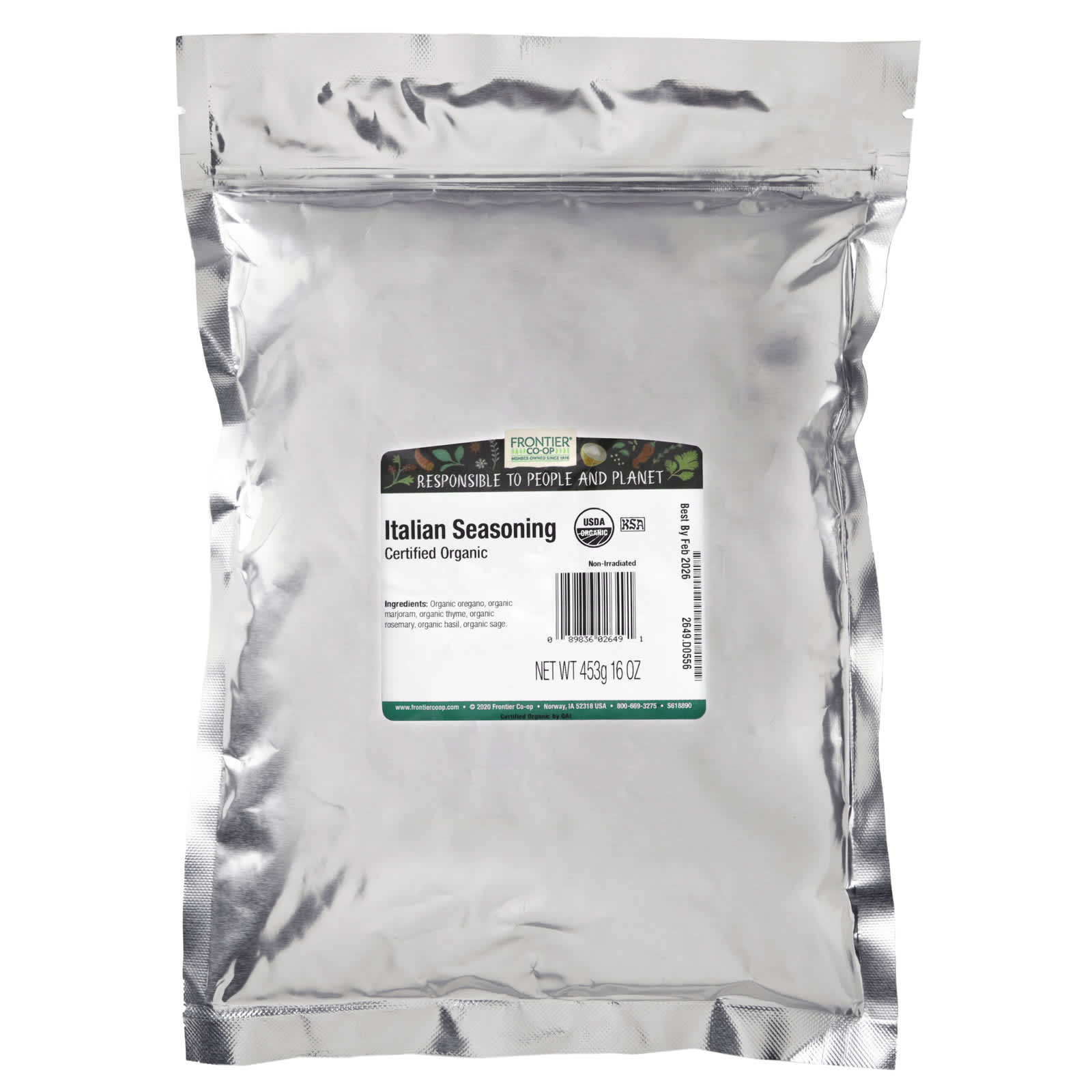 Frontier Co-op Tempero Italiano Orgânico 453 g (16 oz) – Frontier Co-op Alimentos Ervas e temperos Molhos italianos.