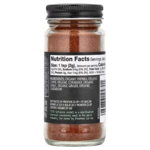 Tandoori Masala da Frontier Co-op é uma mistura orgânica de especiarias criada originalmente para pratos autênticos cozidos em um tandoor ou no forno de argila tradicional da região. Esse tempero picante captura o sabor Étnico do norte da Índia, do Paquistão e do Afeganistão.