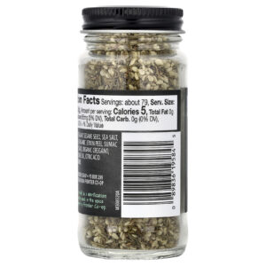 Semente de gergelim orgânico, sal marinho, tomilho orgânico, casca de limão orgânico, suco (bagas de suco, sal), orégano orgânico, óleo de girassol orgânico, ácido cítrico.