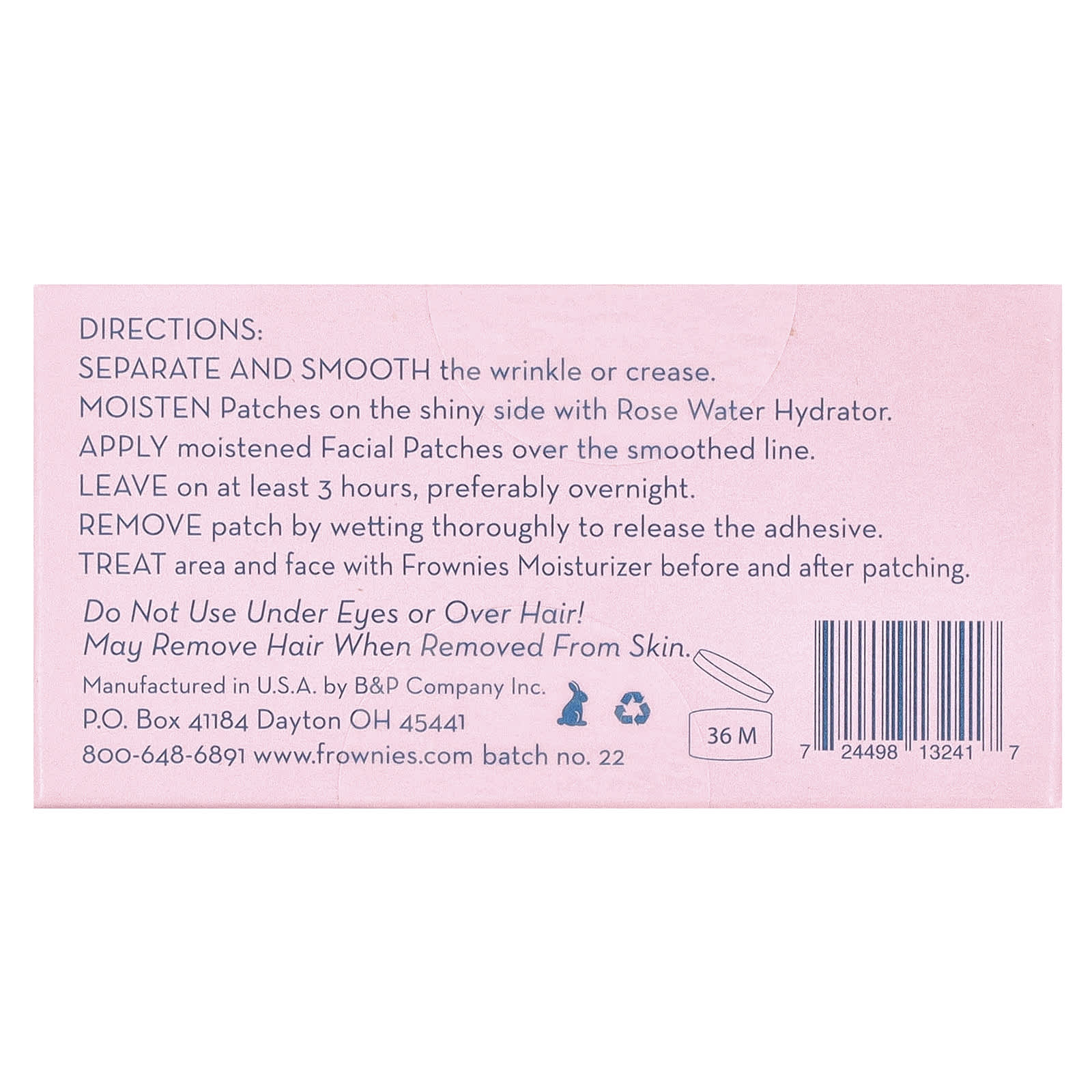 - Trate a área e o rosto com hidratante Frownies antes e depois da aplicação dos adesivos.