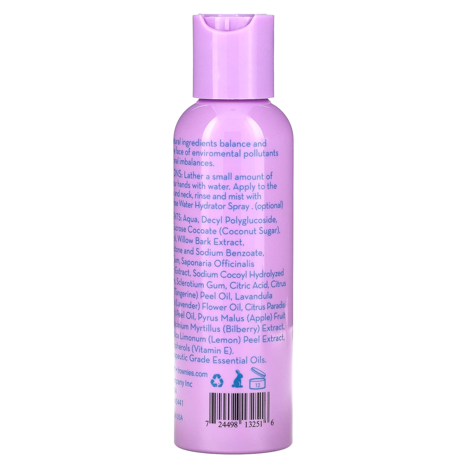 Aqua, glicerina decyl polyglucoside, sucrose cocoate (açúcar de coco) propanediol, extrato da casca de salgueiro, gluconolactone e benzoato de sódio, goma xantana, extrato de Saponaria officinalis (sapindus), proteína de soja hidrolisada de cocoil de sódio, goma de esclerócio, ácido cítrico, óleo de Citrus reticulata (tangerina), óleo da flor Lavandula angustifolia (lavanda), óleo da casca de Citrus paradisi (toranja rosa), extrato da fruta de Pyrus malus (maçã), extrato de Vaccinium myrtillus (mirtilo europeu) extrato da casca de Citrus medica limonum (limão), tocoferóis mistos (vitamina E).