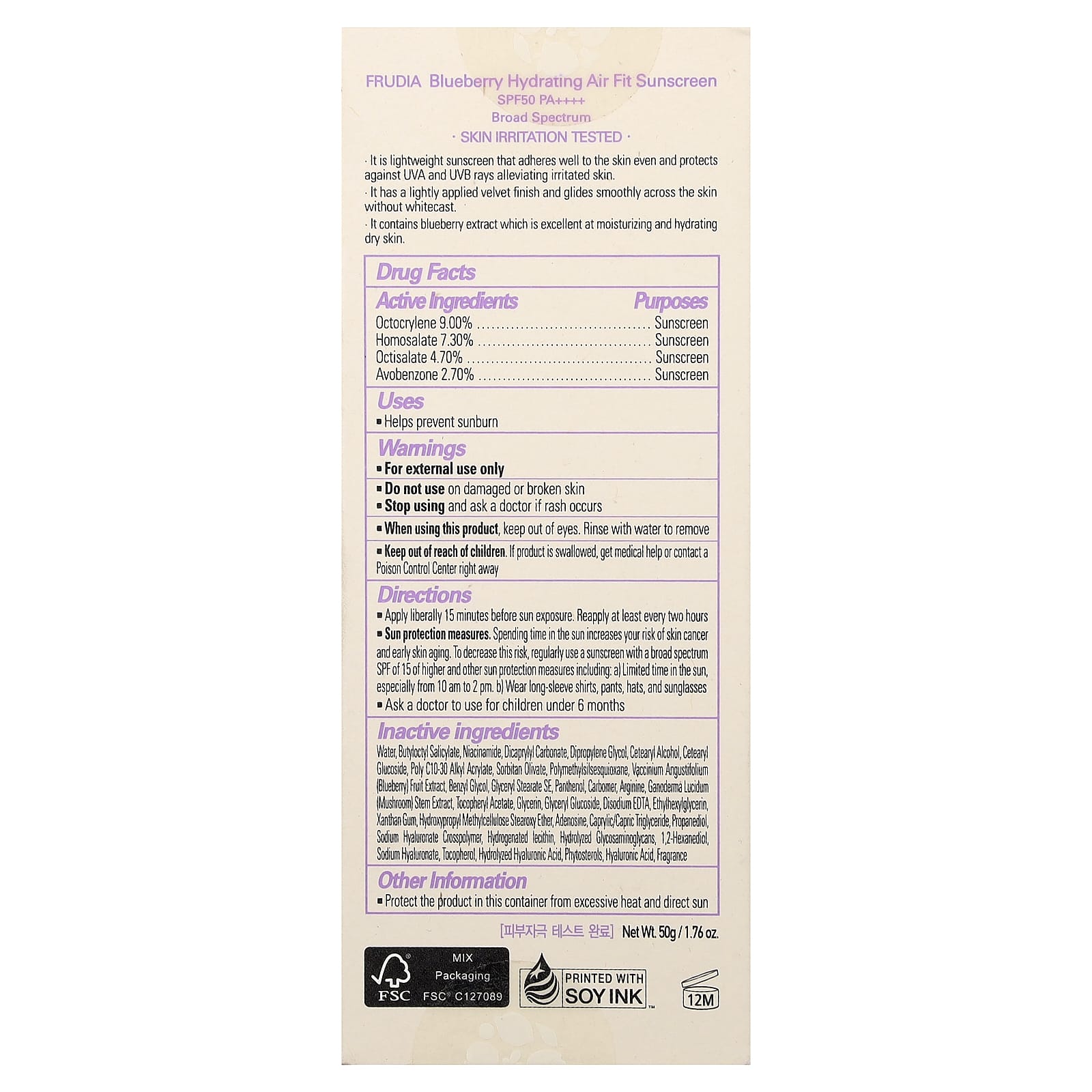 Frudia Protetor Solar Air Fit Hidratante de Mirtilo FPS 50/PA++++ 50 g (176 oz) – Frudia Cuidados Pessoais Protetor Solar Protetor Solar Corporal Protetor Solar K-Beauty.