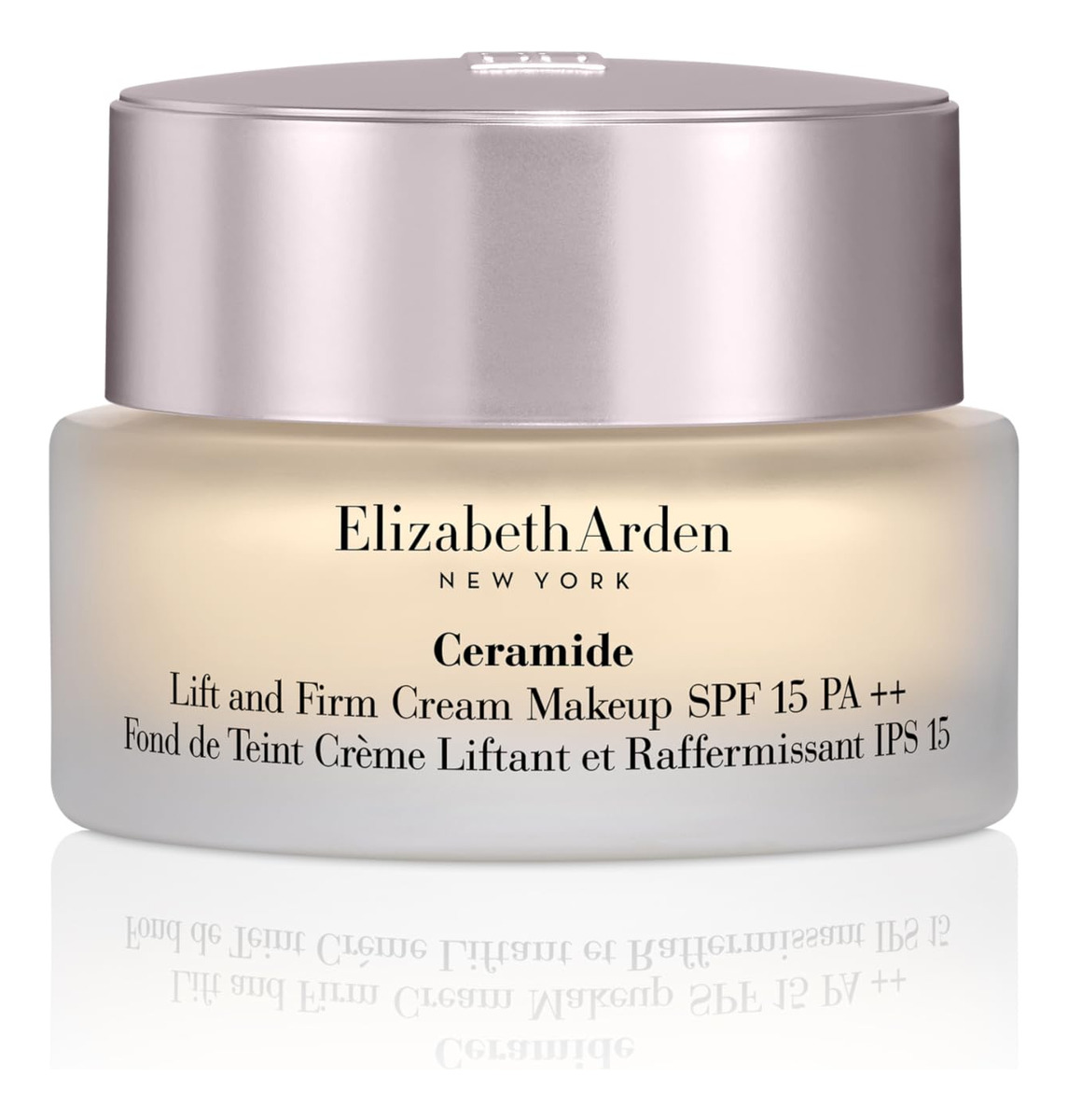 Maquiagem Elizabeth Arden Ceramide Lift and Firm Cream — Sombra 120 W — Fórmula antienvelhecimento com ingredientes condicionadores de pele — Preenche, eleva e firma para uma tez suave e uniforme — Fortalece a barreira da pele para nutrir, firmar e proteger contra a perda de umidade — Fórmula luxuosa e não comedogênica — Cobertura média a total em 14 tons quentes a frios que melhoram a pele