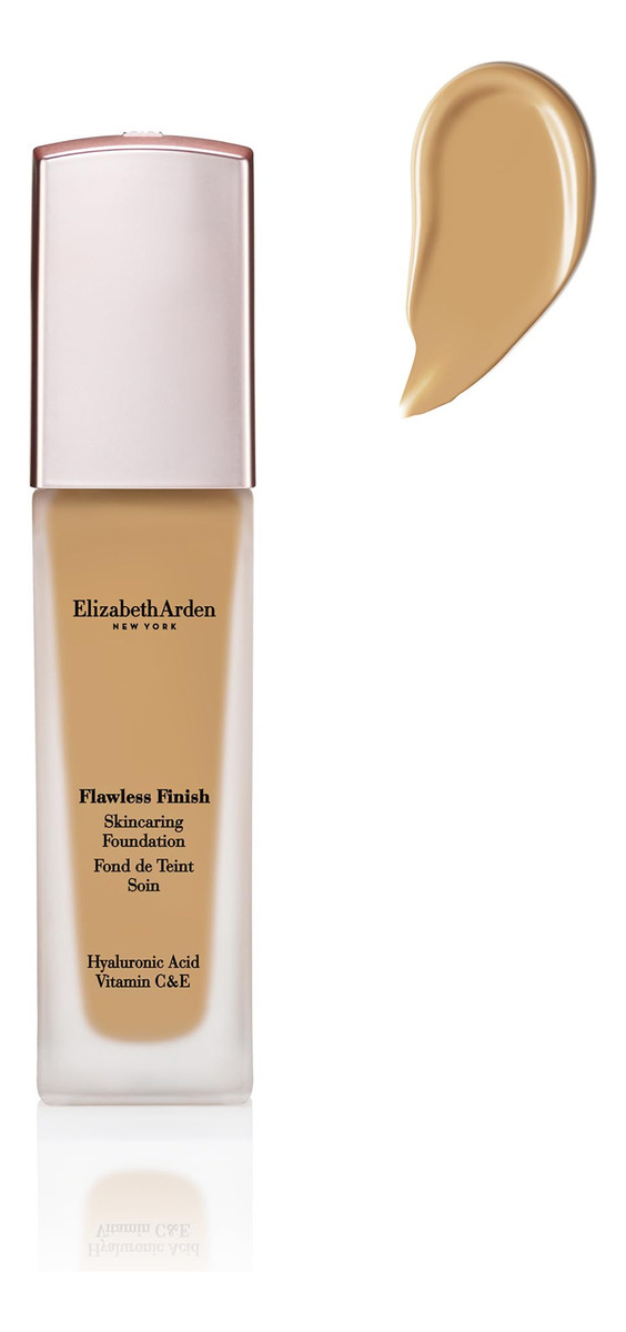 Base para cuidados com a pele Elizabeth Arden Flawless Finish com ácido hialurônico, vitamina C e E, 410N (pele bronzeada com tons quentes de pêssego), 1 fl. oz. – O novo Flawless Finish Foundation Care é uma base de longa duração – Aplique com um pincel ou liquidificador de beleza, além do sérum hidratante Flawless Start Base – Tipo de pele normal – Ingredientes CYCLOHEXASILOXANE AQUAWATER – Elizabeth Ar. den – Fundação Flawless Finish Care