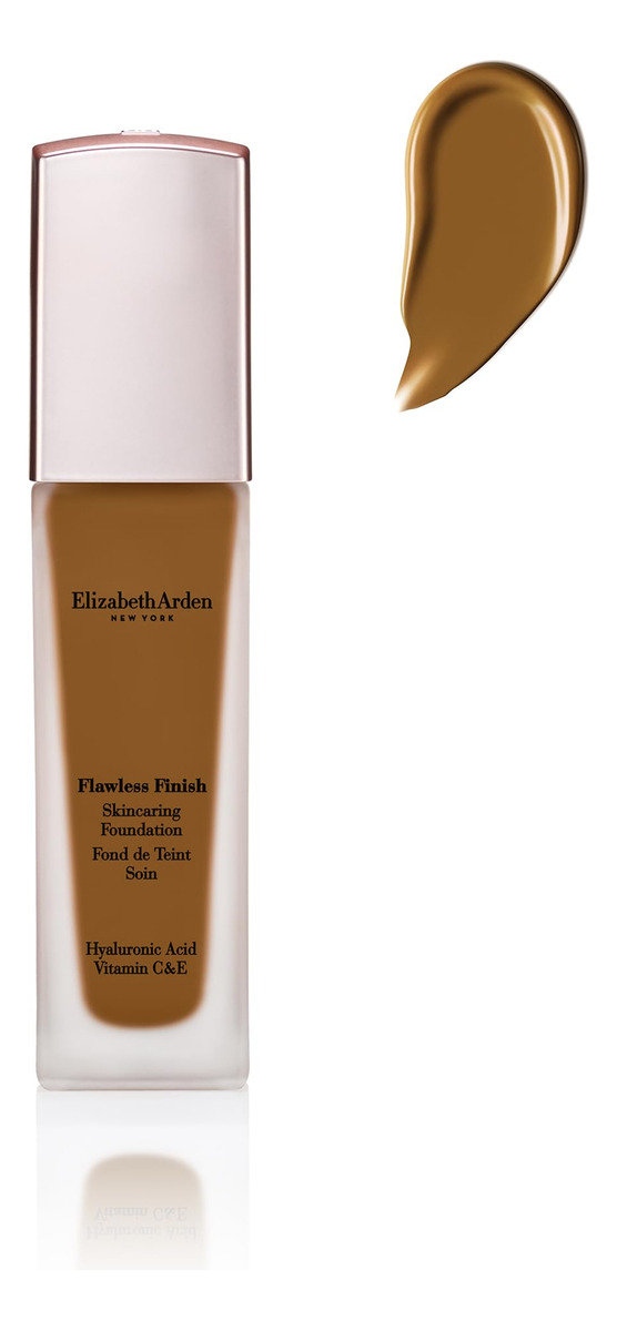 Base para cuidados com a pele Elizabeth Arden Flawless Finish com ácido hialurônico, vitamina C e E, 550N (pele profunda com tons neutros), 1 fl. oz. – A nova base Flawless Finish Foundation Care é uma base duradoura com acabamento natural que oferece uma cobertura leve – Aplique com um pincel ou liquidificador de beleza, além do sérum hidratante Flawless Start Base. Module a cobertura conforme necessário – Tipo de pele Normal
