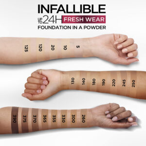 Base de maquiagem L'Oreal Paris Infallible Fresh Wear em pó, até 24 horas de uso, impermeável, amarelo marfim, 0,31 onças. — Base em pó: com uma textura leve que oferece cobertura total e um acabamento natural fosco que parece fresco hora após hora, essa base em pó é respirável e leve, usada por até 24 horas — Cobertura diurna: com efeito desfocado e acabamento fosco o dia todo, este pó uniformiza o tom da pele sem transferência e cobre como um líquido sem aparência de bolo; não comedogênico, impermeável, resistente ao calor e à prova de suor — The Infallible Coleção: recorra aos cosméticos que os profissionais usam e obtenha cores duradouras, definição especializada e fórmulas de cobertura total que realmente permanecem firmes com Infallible – Porque você vale a pena: crie a aparência que você deseja com nossa linha completa de maquiagem, incluindo bases, corretivos, maquiagem iluminadora, lápis de sobrancelha, paletas de sombras, batons e muito mais – L'Oreal Paris Beauty: uma empresa líder em cuidados de beleza completos em Paris, oferecemos produtos inovadores e experiência exclusiva de especialistas em beleza em maquiagem, cuidados com a pele, cuidados com o cabelo, estilo e cor do cabelo