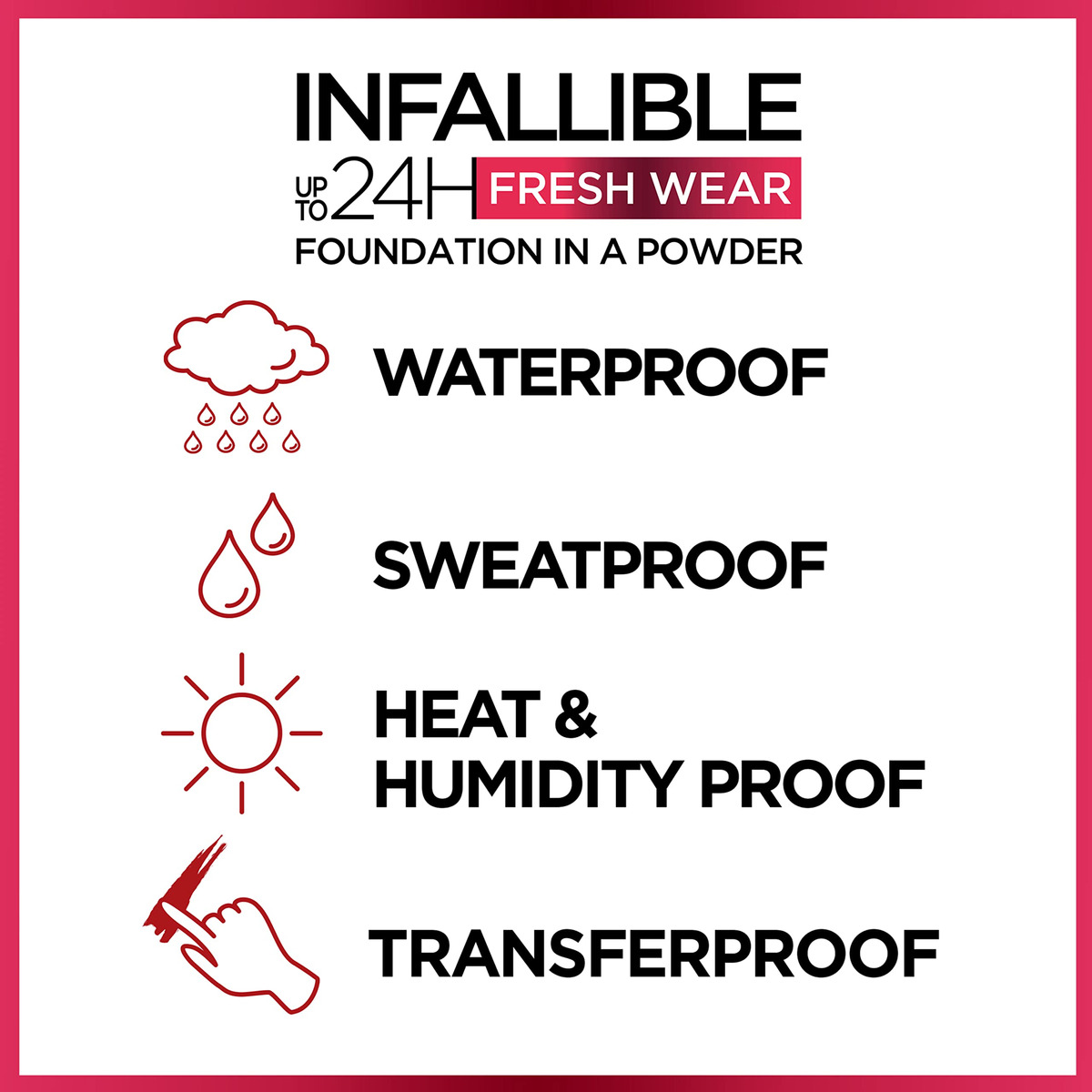 Exija mais de longwear! Infalível até 24horas de roupas frescas com capas de base em pó como um líquido um mattifies sem look cakey. A textura em pó sem peso dá cobertura completa e um acabamento natural e fosco que parece fresco hora após hora. A fórmula parece respirável e sem peso deixando a pele confortável por até 24horas. Com um efeito desfoque e acabamento fosco durante todo o dia, este pó iguala o tom de pele sem transferência. É à prova d'água, à prova de calor e à prova de suor. Disponível em 16 tonalidades e adequado para todos os tipos de pele, até mesmo pele oleosa e pele propensa à acne. Não é cometótico sem sensação gordurosa e foi testado sob controle dermatológico.