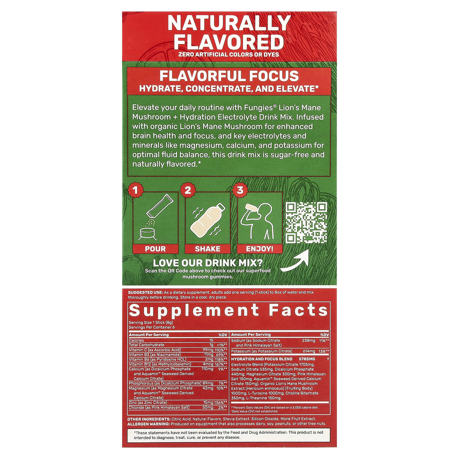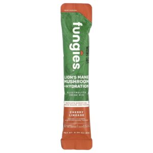 Fungies Cogumelo Juba-de-leão + Hidratação Mistura para Bebida de Eletrólitos Limonada Siciliana de Cereja 6 Embalagens 8 g (028 oz) Cada – Fungies Suplementos Cogumelos Juba de Leão Nutrição Esportiva Hidratação e Eletrólitos.