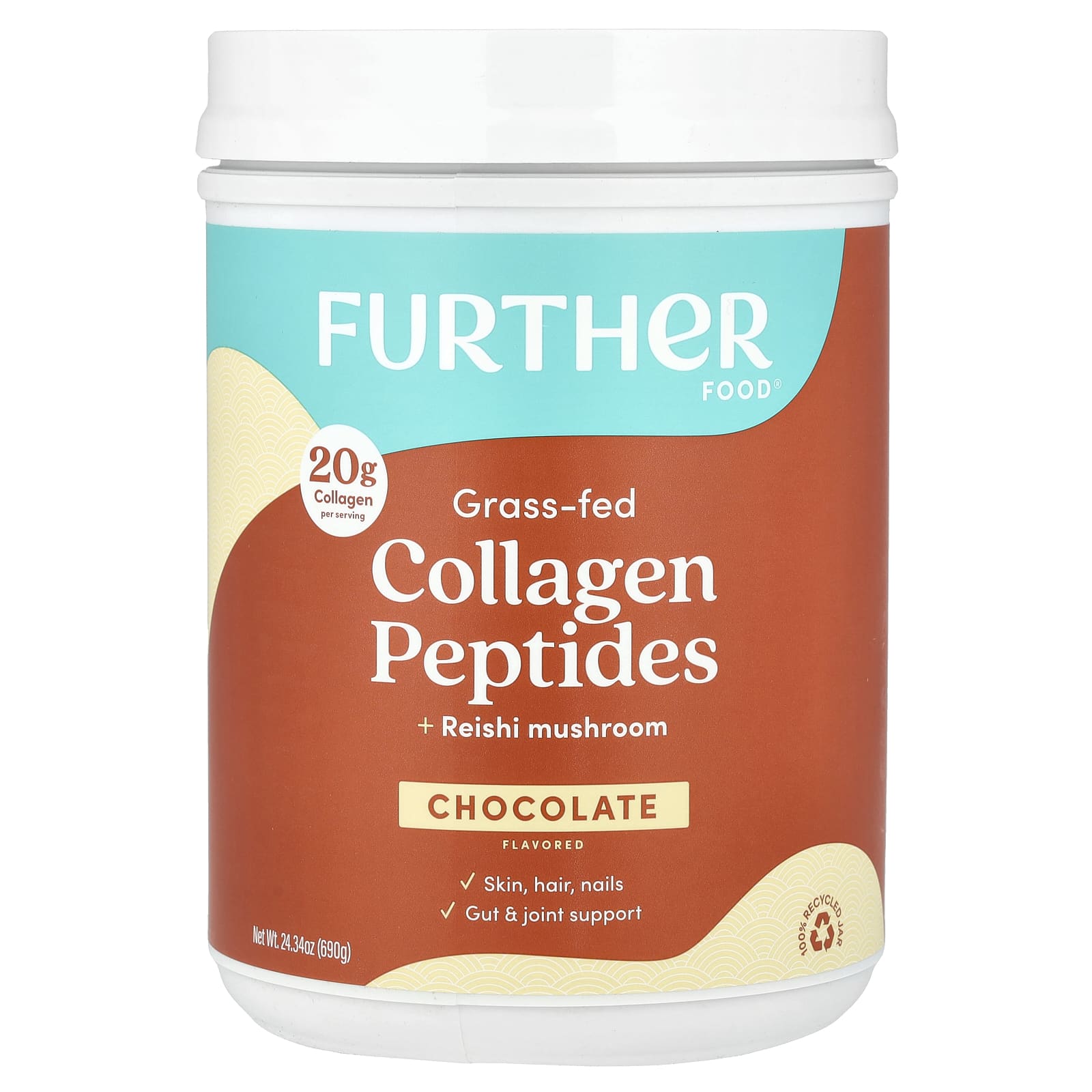 Further Food Peptídeos de Colágeno de Gado Criado no Pasto + Cogumelo Reishi Chocolate 690 g (2434 oz) – Further Food Suplementos Ossos, Articulações e Cartilagem Colágeno, Suplementos.