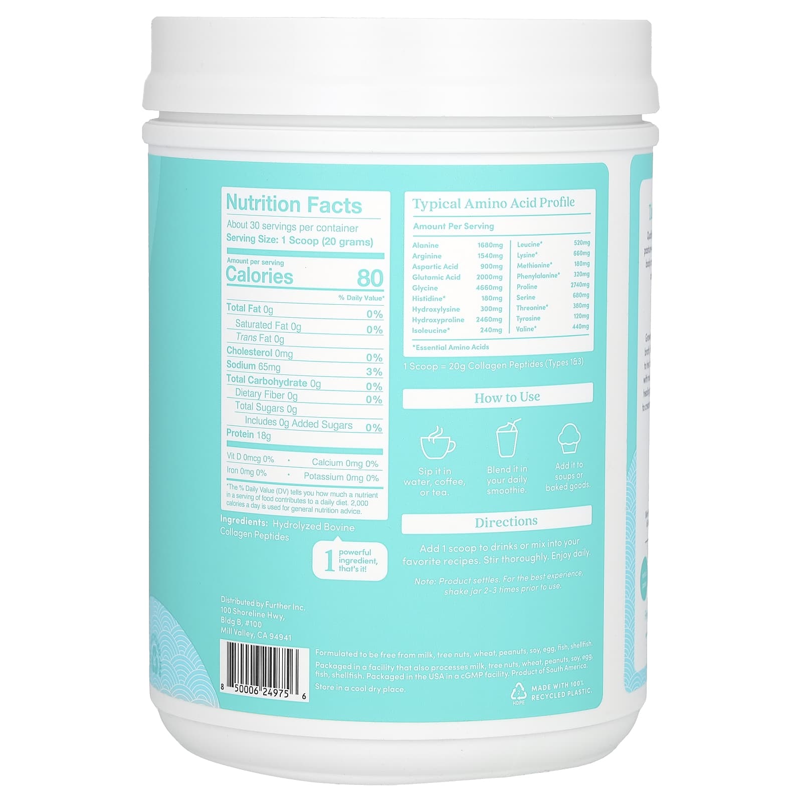Further Food Peptídeos de Colágeno de Gado Criado no Pasto Sem Sabor 600 g (2116 oz) – Further Food Suplementos Ossos, Articulações e Cartilagem Colágeno, Suplementos.