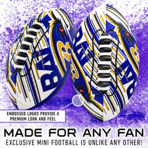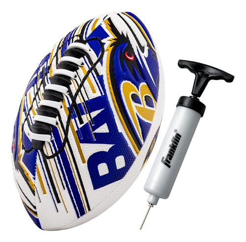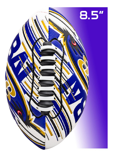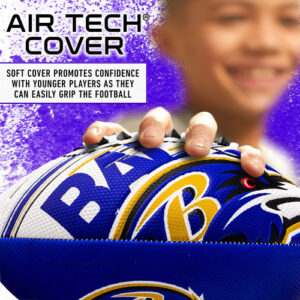Futebol americano Franklin Sports NFL Baltimore Ravens — Mini futebol juvenil — Futebol de 8,5" — Textura fácil de manusear da SPACELACE — Perfeita para crianças! – FUTEBOL PARA QUALQUER FÃ: Este minigolfe exclusivo é diferente de qualquer outro futebol, pois foi especialmente projetado com logotipos em relevo para uma aparência rara! – Tamanho perfeito: este minigolfe de 8,5 polegadas tem o tamanho ideal para caber nas mãos de um jovem jogador, para que seu futuro campeão possa pegar e jogar no campo como os profissionais! – TECNOLOGIA EXCLUSIVA SPACELACE: este sistema de cadarço especialmente projetado guia os dedos até a posição correta nos cadarços para facilitar o lançamento de espirais apertadas para crianças de todas as idades! – POSSUI CAPA AIR TECH: esta capa macia promove a confiança dos jogadores mais jovens, pois eles podem segurar facilmente a bola de futebol, o que a torna perfeita para churrascos na praia ou no quintal! – OFICIAL DA NFL: Esta bola de futebol de 8,5" é oficialmente licenciada pela NFL, com logotipos e cores específicos da equipe!