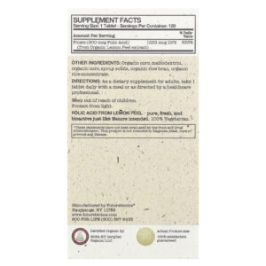 O Ácido Fólico da Futurebiotics® é Certificado Orgânico. Na verdade, todos os ingredientes deste produto, sem exceção, são Certificados Orgânicos.
