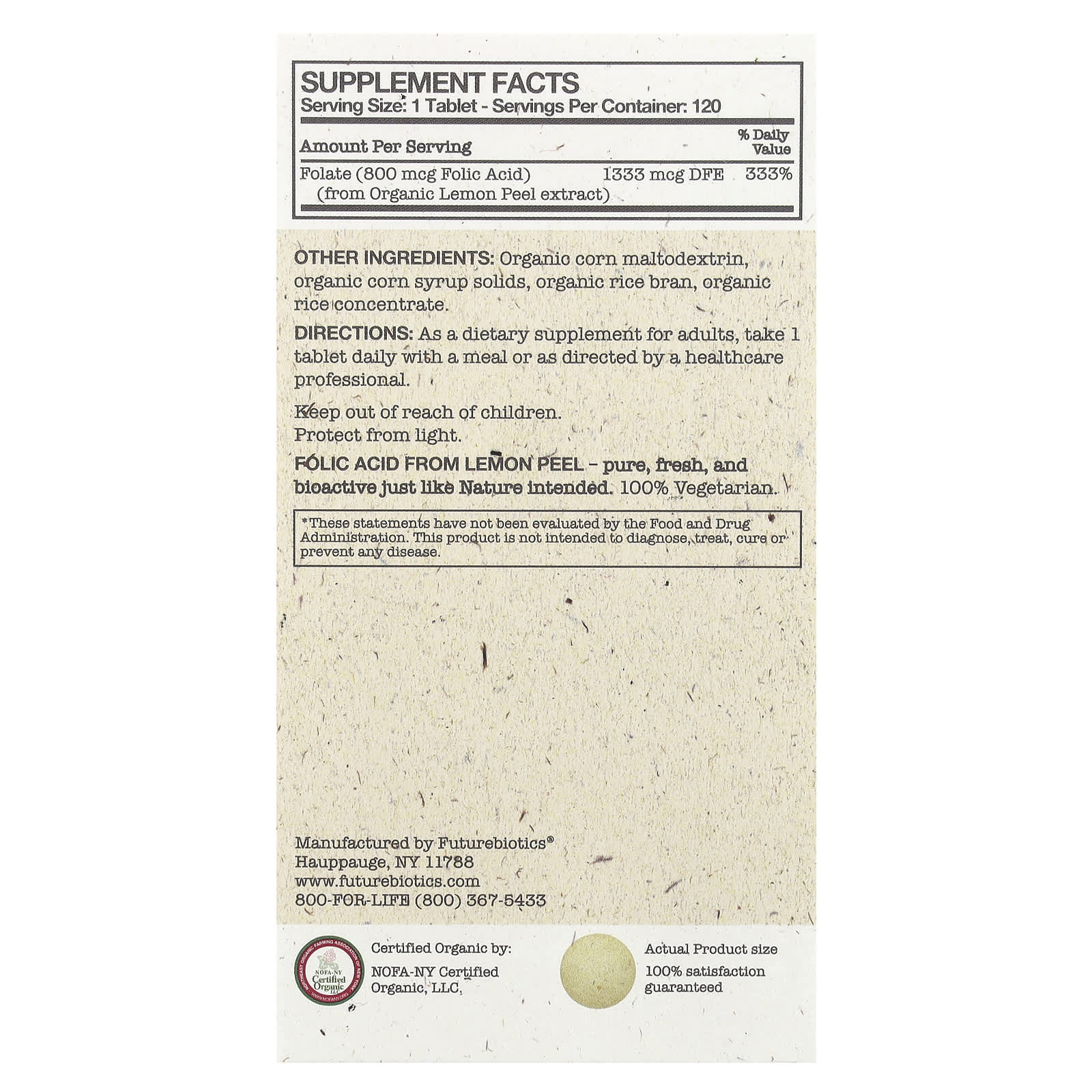 Futurebiotics Ácido Fólico da Casca de Limão 800 mcg 120 Comprimidos Vegetarianos Orgânicos – Futurebiotics Suplementos Vitaminas Vitamina B Vitamin B9 (Folate – Folic Acid).