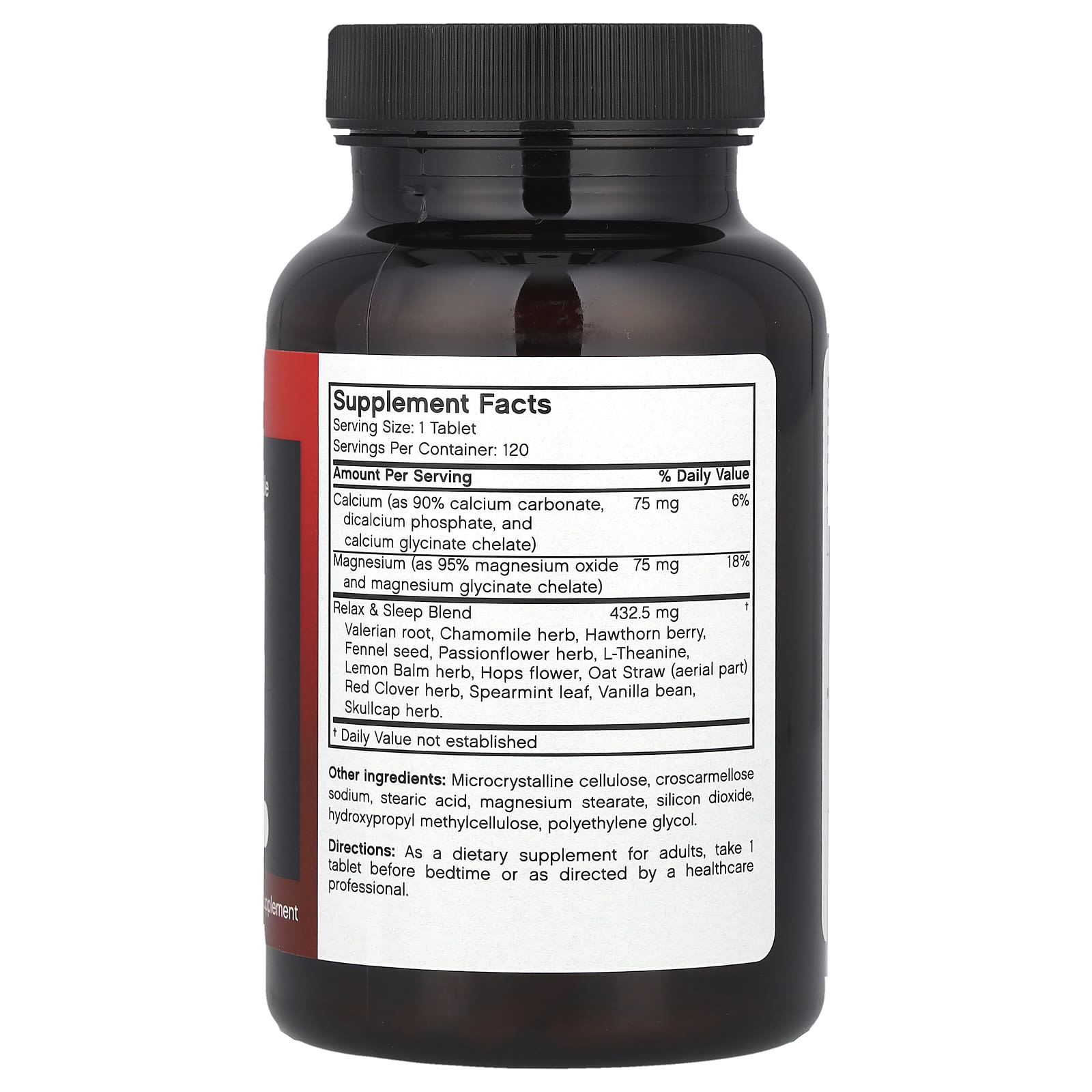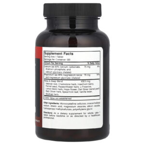 Raiz de Valeriana, Erva de Camomila, Espinheiro, Semente de Erva-doce, Erva de Passiflora, L-Theanine, Erva-Cidreira, Flor de Lúpulo, Palha de Aveia (parte aérea), Trevo Vermelho, Folha de Hortelã, Fava de Baunilha, Erva de Escutelária.