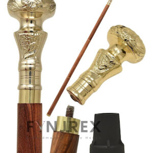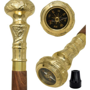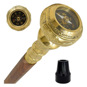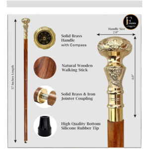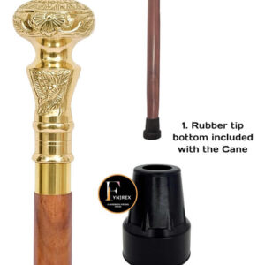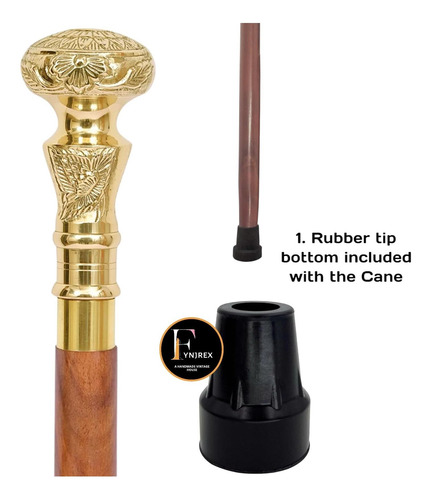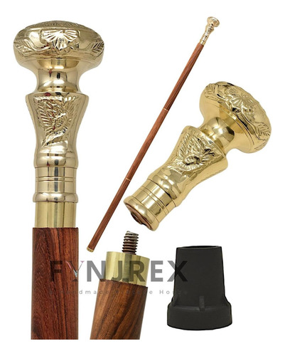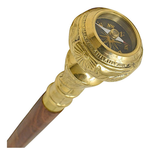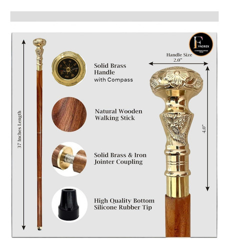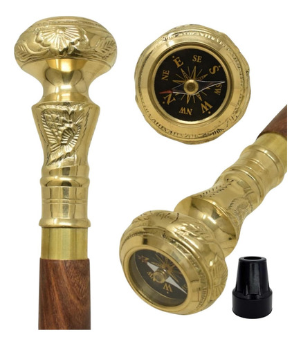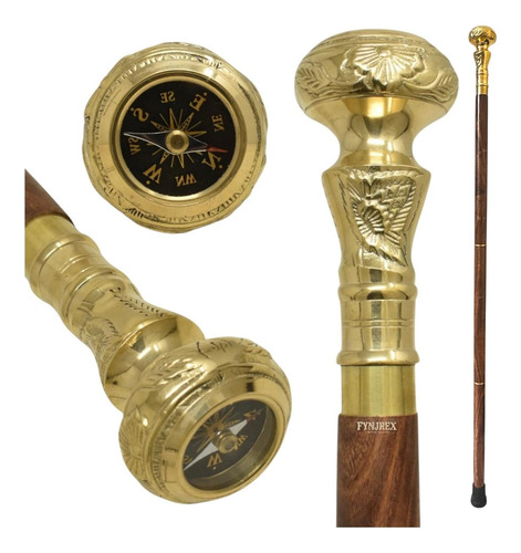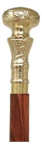 • Puxa de caminhada, bastão de bronze bastão 36 polegadas, alça de latão e bengala de madeira