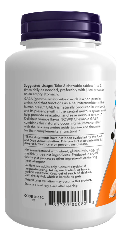 Gaba 250mg Now Foods 90 Chewables Mastigáveis Importado