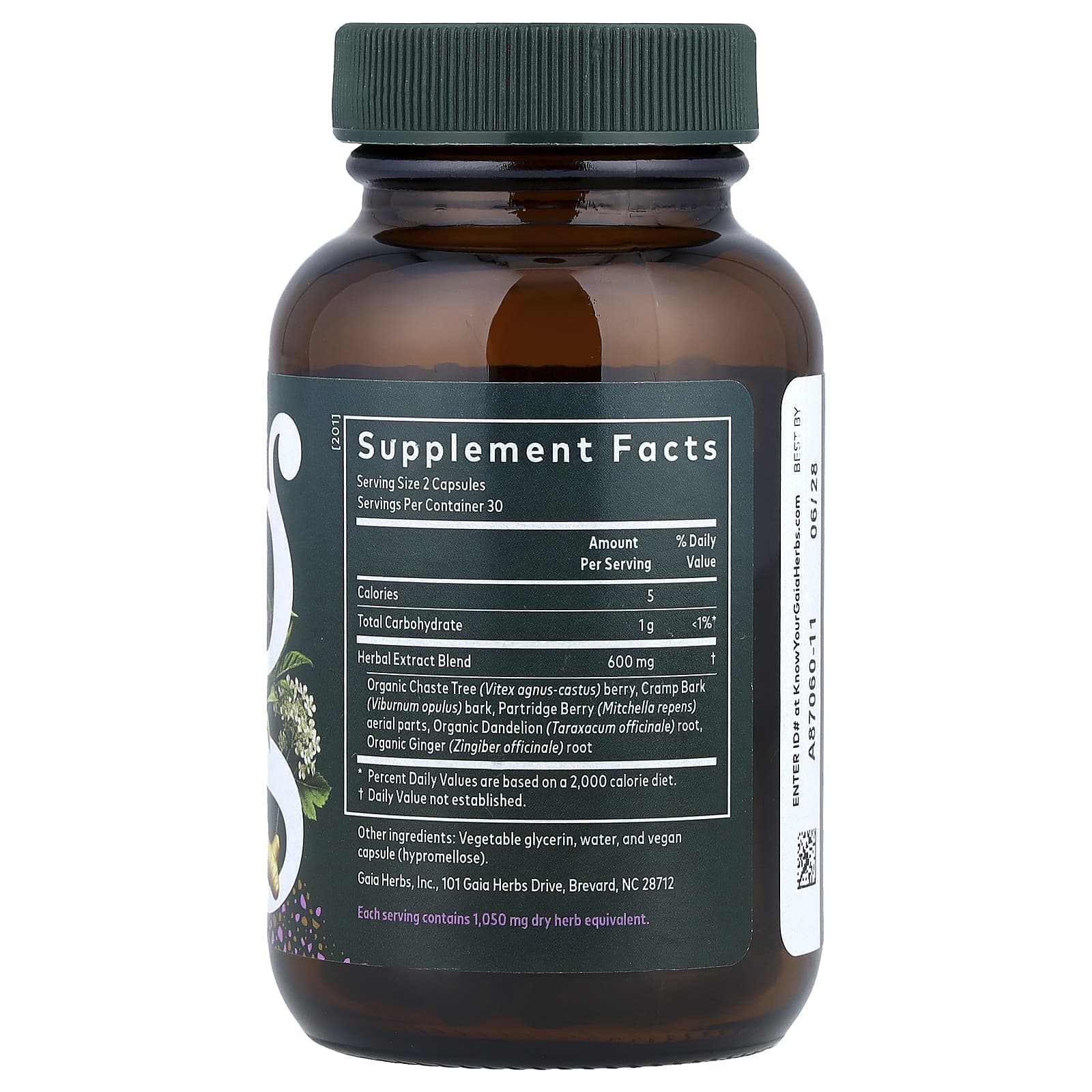 Baga de Agnocasto Orgânico (Vitex agnus-castus), Casca de Cravo (Viburnum opulus), Partes aéreas de Baga de Perda (Mitchella repens), Raiz de Dente-de-Leão (Taraxacum officinale) Orgânico, Raiz de Gengibre Orgânico (Zingiber officinale)